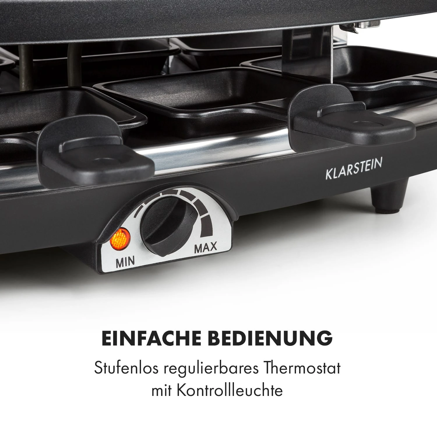 - stufenloser Temperaturdrehregler mit Kontrollleuchte