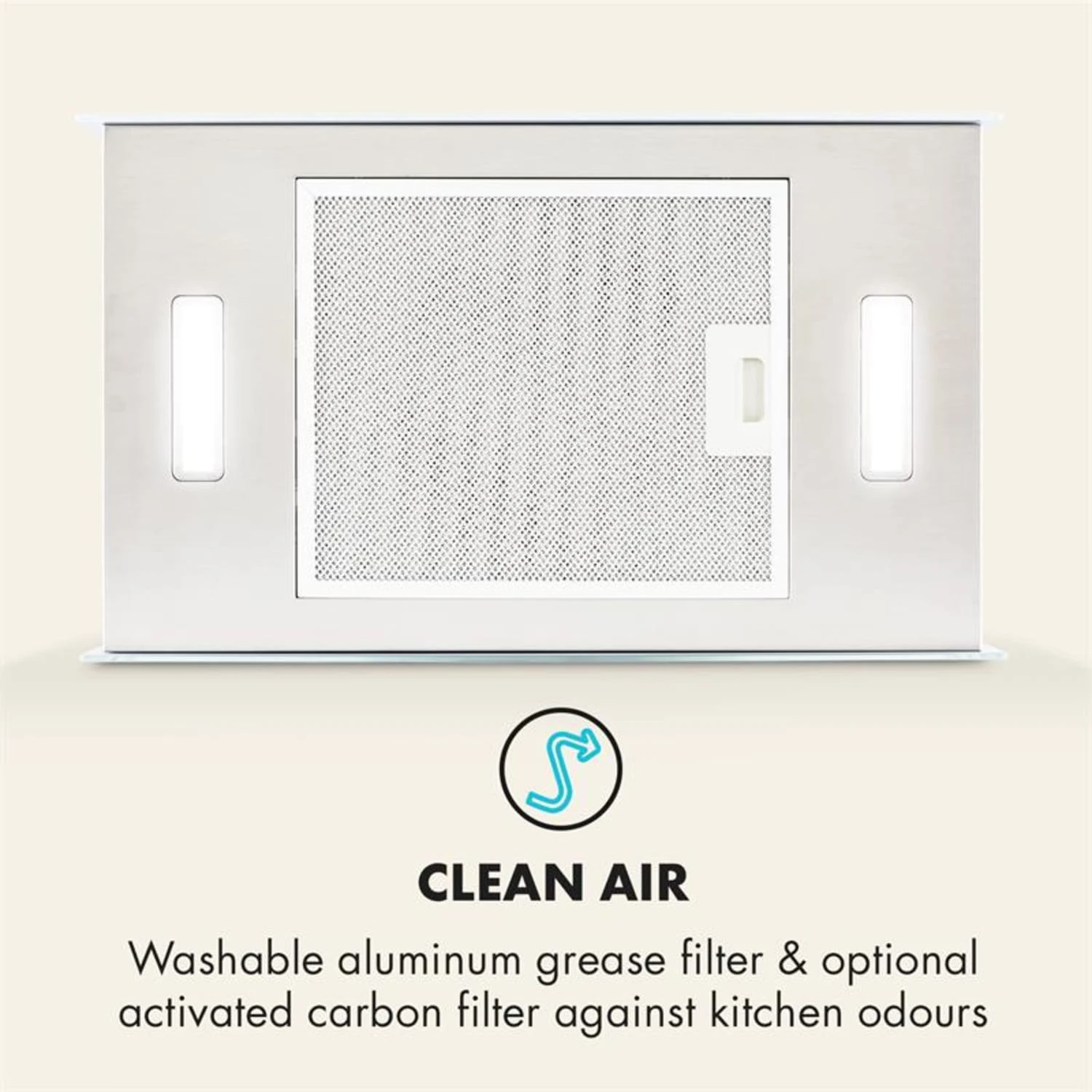 - Saubere Luft: abwaschbarer Aluminium-Fettfilter & optionale Aktivkohlefilter gegen Küchengerüche