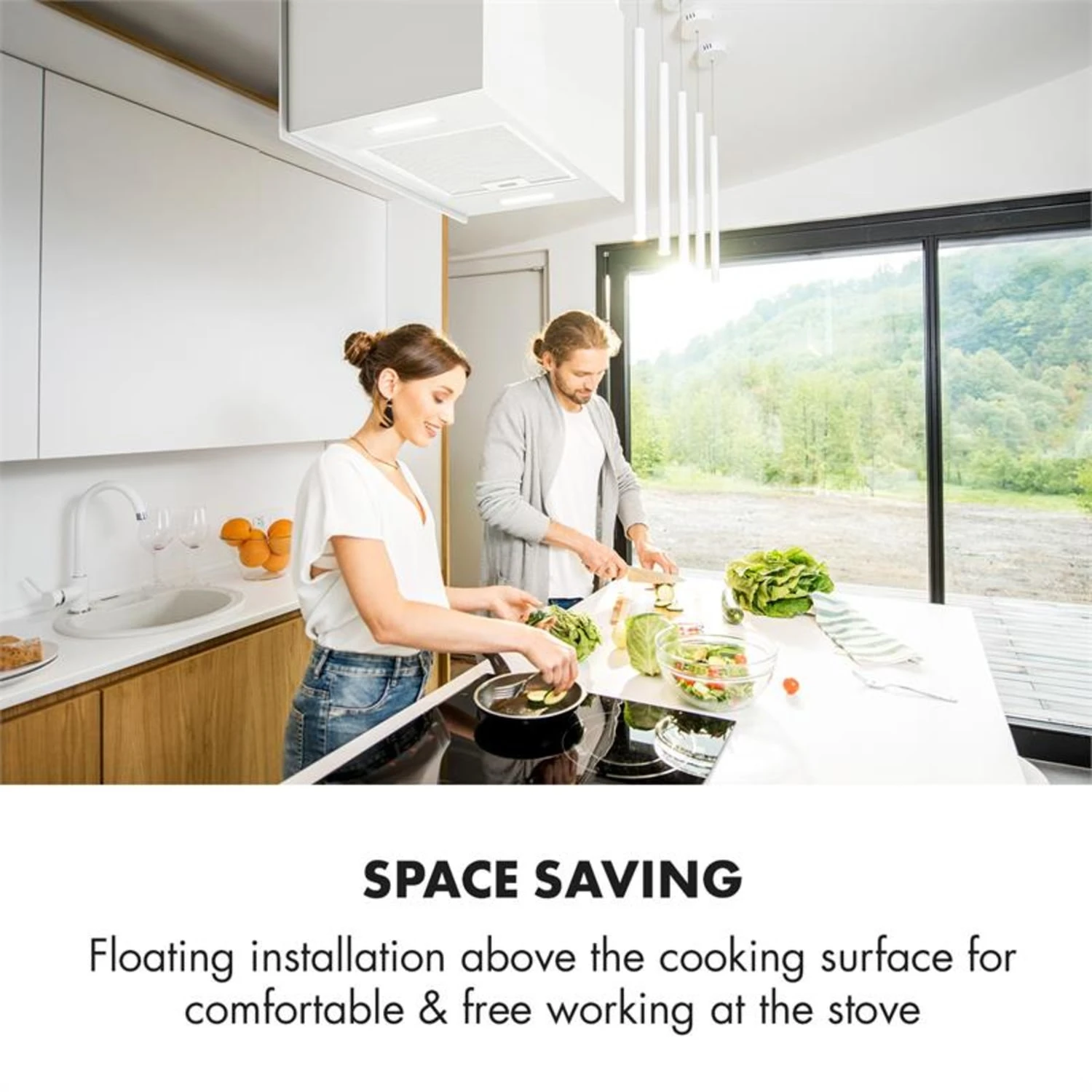 - Platzsparend: schwebende Installation über der Kochfläche für bequemes & freies Arbeiten am Herd