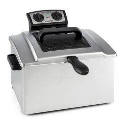 Komfortable Edelstahl-Fritteuse für Haushalts- und semiprofessionellen Gebrauch mit 5 Litern Volumen zum Frittieren von bis 1,5kg Frittiergut.