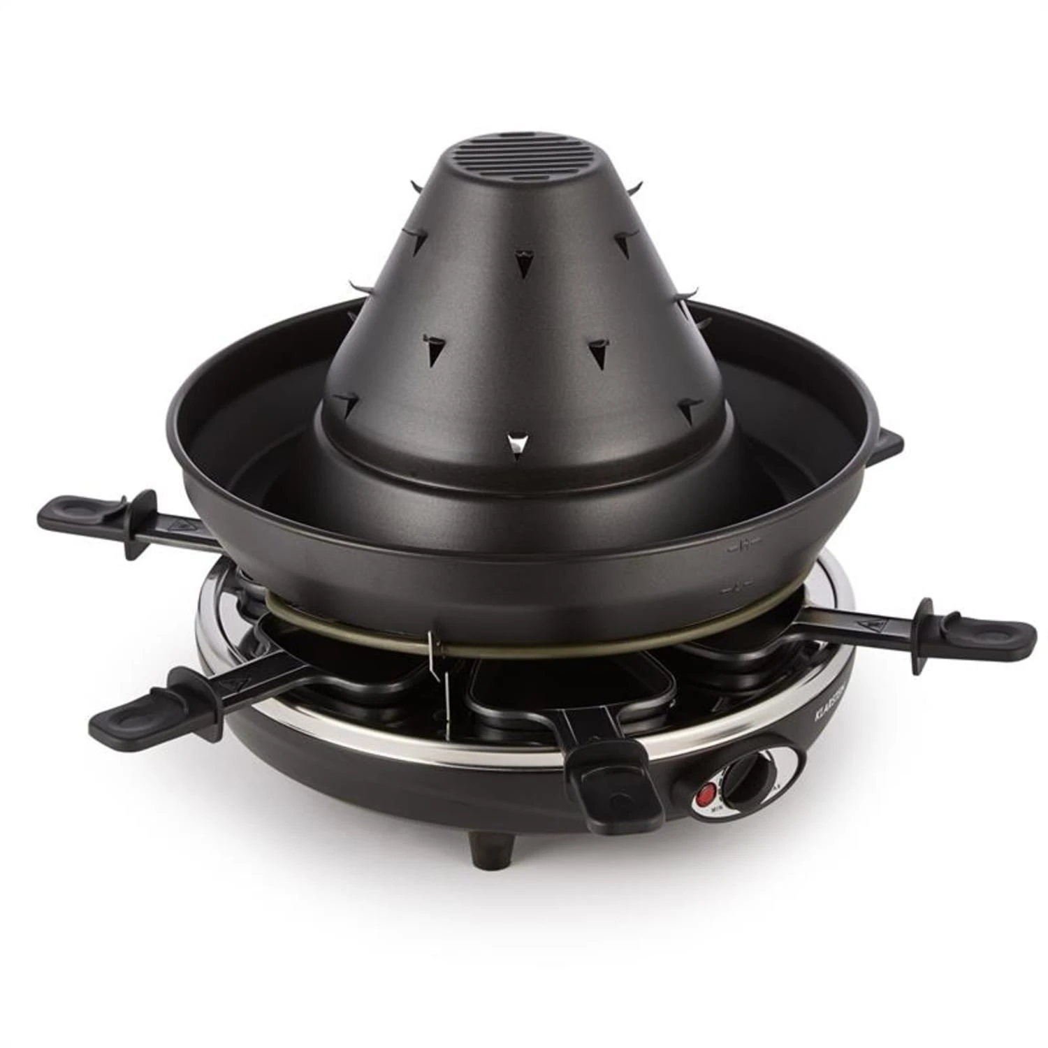 Wenn der Großkhan zum Essen ruft, dann versammelt sich die Goldene Horde hungrig um den Klarstein Taste Volcano Tataren- und Raclettegrill. Am glühenden Grillkegel und mit 6 Pfännchen wird hier die Lust auf Fleisch, Käse und Gemüse gestillt.