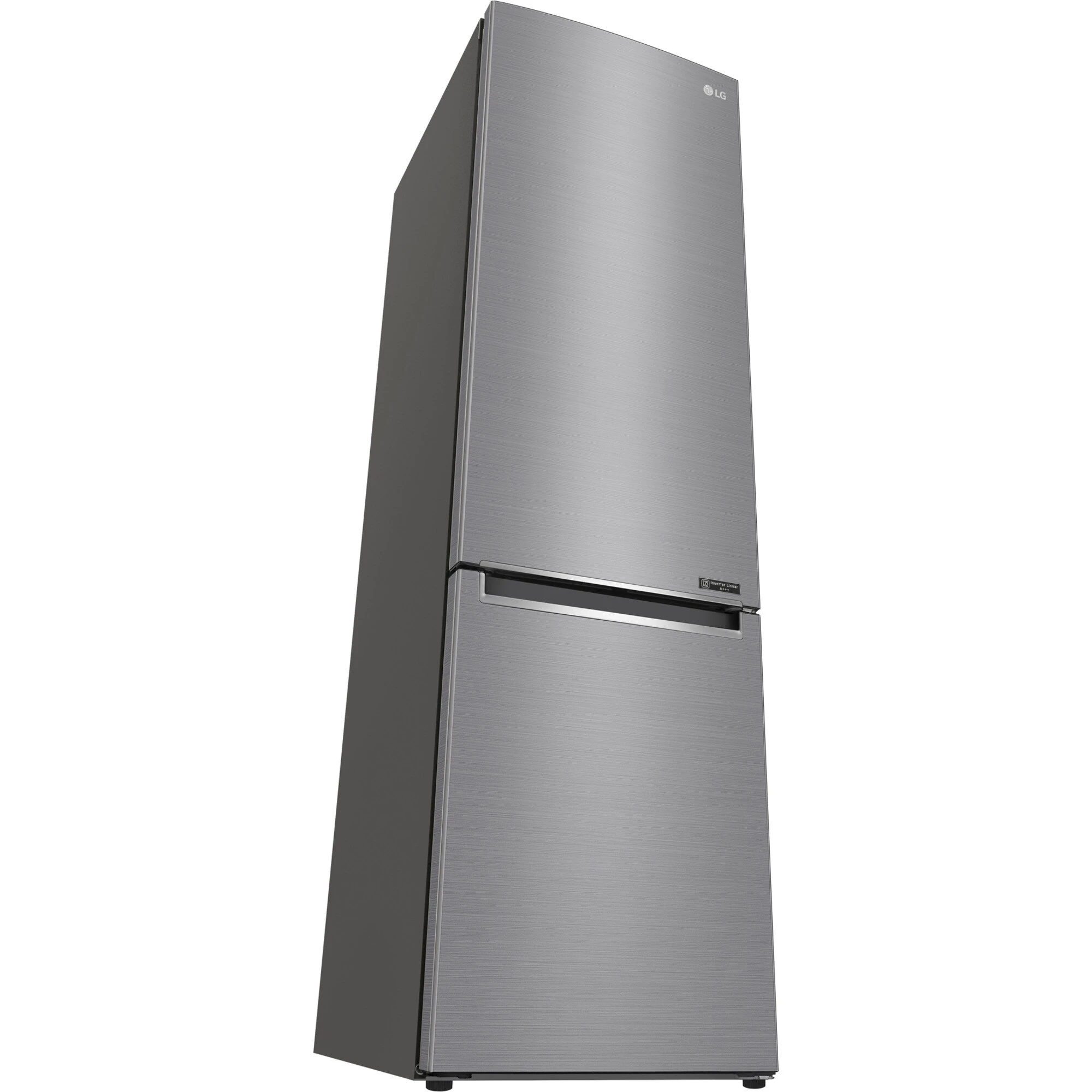 Die Kühl-/Gefrierkombination LG GBB62PZGFN ist mit einem Gesamtnutzinhalt von 384 Litern ideal für den größeren Haushalt geeignet und bietet zahlreiche Features. Der 277 Liter umfassende Kühlbereich ist großzügig mit drei Abstellflächen aus Sicherheitsglas, zwei Obst-/Gemüseschubladen, davon einem nach Bedarf regelbaren Fresh Converter Fach für die längere Lagerung von Fleisch, Fisch oder Gemüse, ausgestattet. Die Multiairflow Umluftkühlung sorgt ebenso wie die zusätzliche Luftöffnung oben im vorderen Bereich (Door Cooling+) für eine schnelle und gleichmäßige Kühlung der Lebensmittel. Der Gefrierbereich der GBB62PZGFN stellt auf einem Nutzinhalt von 107 Litern drei transparente Gefrierschubladen zur Verfügung und muss dank Total No-Frost nie wieder mühsam abgetaut werden. Darüber hinaus bietet die GBB62PZGFN unter anderem die Funktionen Express Cooling und Express Freeze. Im Falle einer Störung kann mittels Smart Diagnosis eine telefonische Fehlerdiagnose durchgeführt werden. Mit einem Stromverbrauch von 215 kWh im Jahr ist die GBB62PZGFN in die Energieeffizienzklasse D eingestuft.