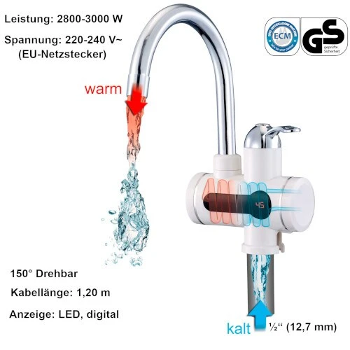 Digitaler Wasserhahn mit Durchlauferhitzer