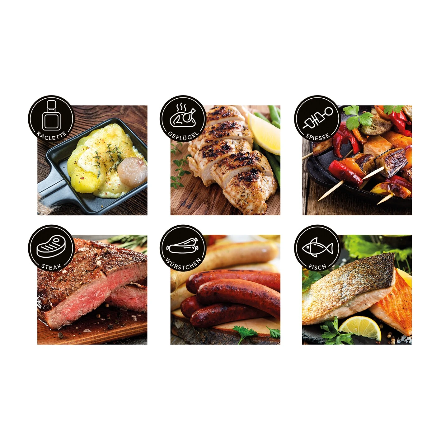 • Kombination aus Raclette- und Drehspieß-Grill für zahlreiche Zubereitungsmöglichkeiten