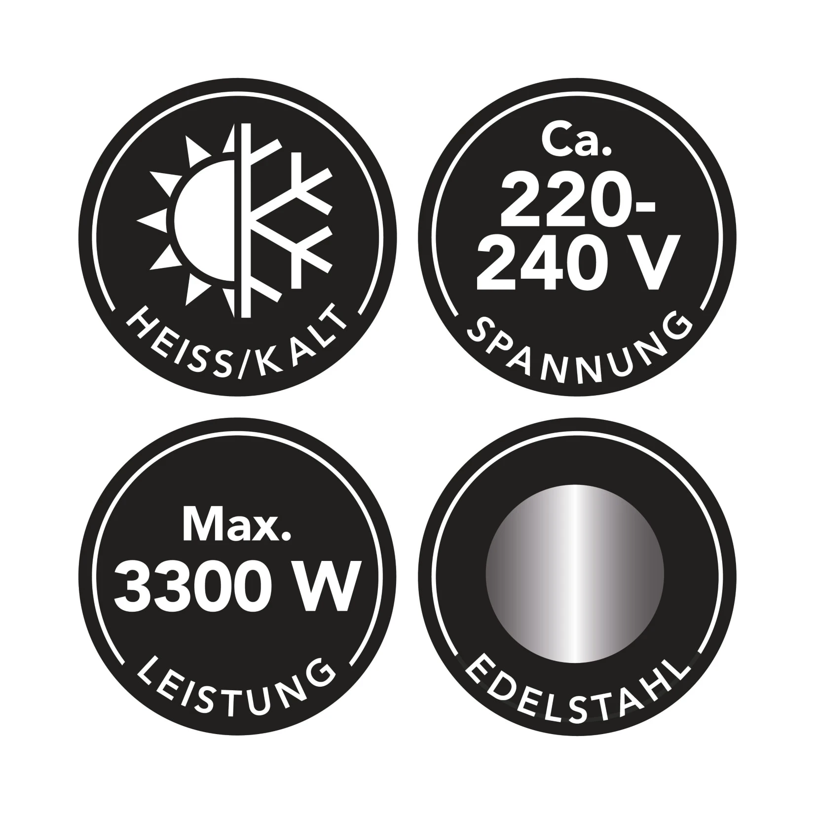 Technische Daten: max. 3600 W, 220-240 V, 50/60 Hz