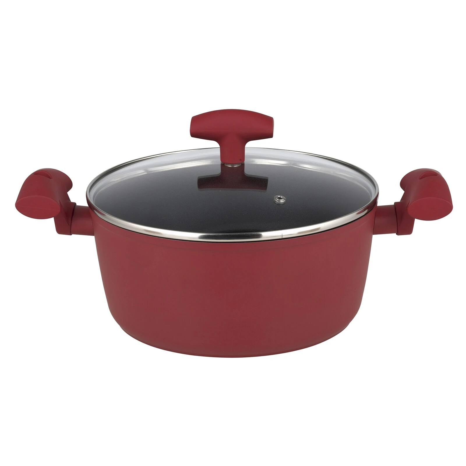 Ein moderner Topf mit Glasdeckel für gesundes, fettarmes Braten. Die Wärme wird gleichmäßig verteilt, für alle gängigen Kochfelder geeignet.