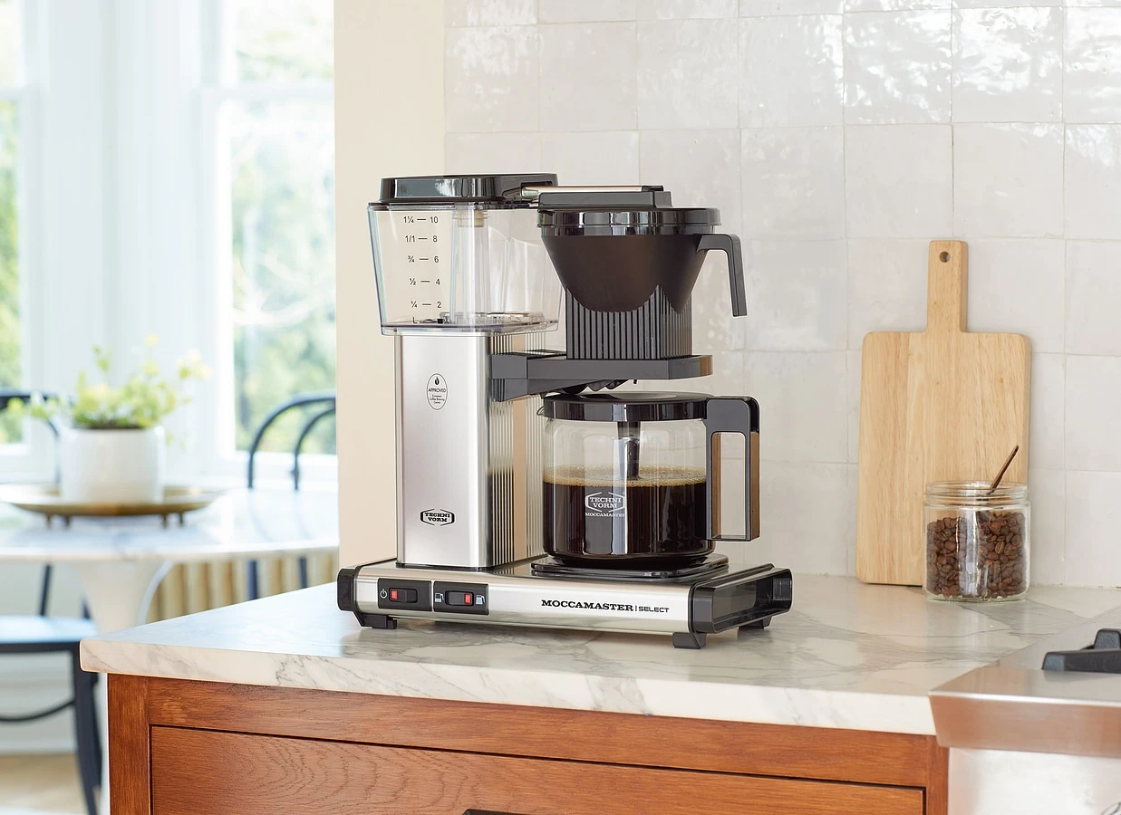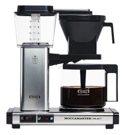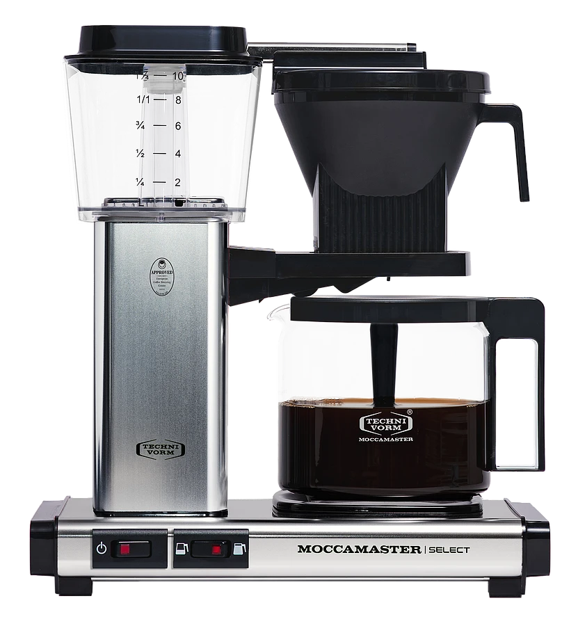 Der neue Moccamaster KBG Select eignet sich für die Zubereitung von 4 bis 10 Tassen Kaffee. Mit dem Wahlschalter können Sie ganz einfach eine volle oder halbe Kanne auswählen. Bei einer halben Kanne ist die Fließzeit langsamer. Das Ergebnis ist ein aromatischer Kaffee mit vollem Geschmack, unabhängig von der Menge. Wählen Sie die Kaffeemaschine für eine volle Kanne Kaffee, aber auch für wenige Tassen.