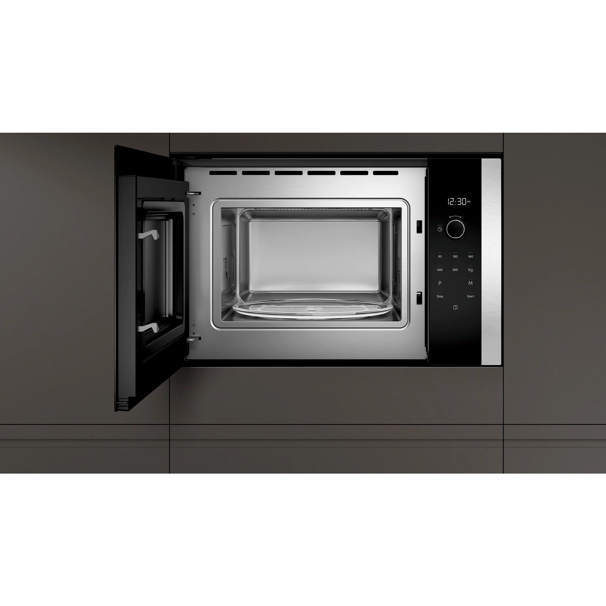 - Allgemein – Bedienung: FullTouch Control Steuerung, Touch- Direktwahltasten, Öffner-Taste (elektrisch), Mikrowellen-Leistungsstufen: 90 W, 180 W, 360 W, 600 W, 900 W