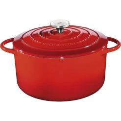 Der Topf ist perfekt um Gemüse oder Fleisch zu schmoren, köcheln, braten und sogar frittieren. Das Gusseisen nimmt die Wärme schnell auf und gibt Sie optimal verteilt weiter. die Knöpfe sind hitzebeständig bis 250°C, also auch für den Backofen geeignet. Den Bratentopf gibt es in verschiedenen Größen.