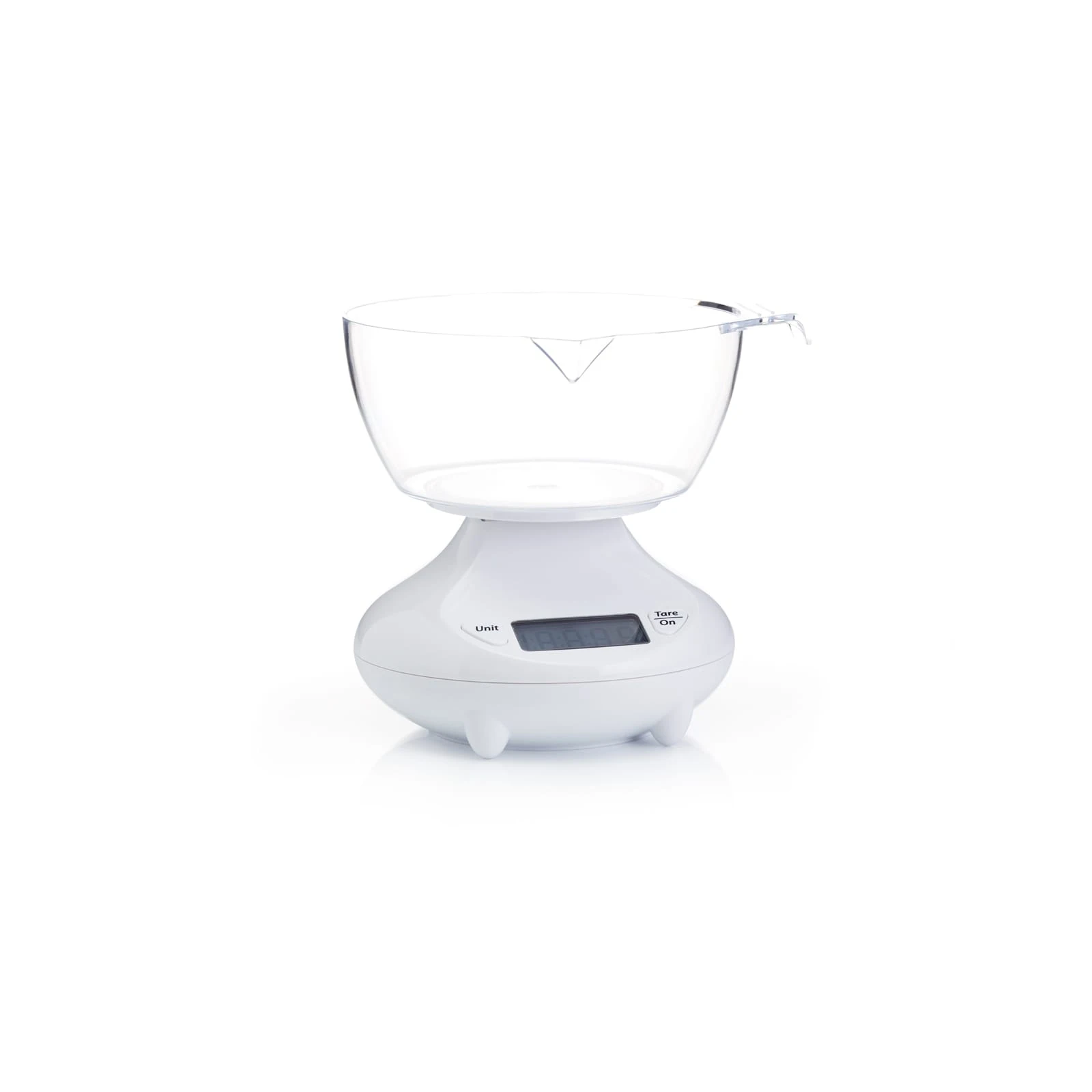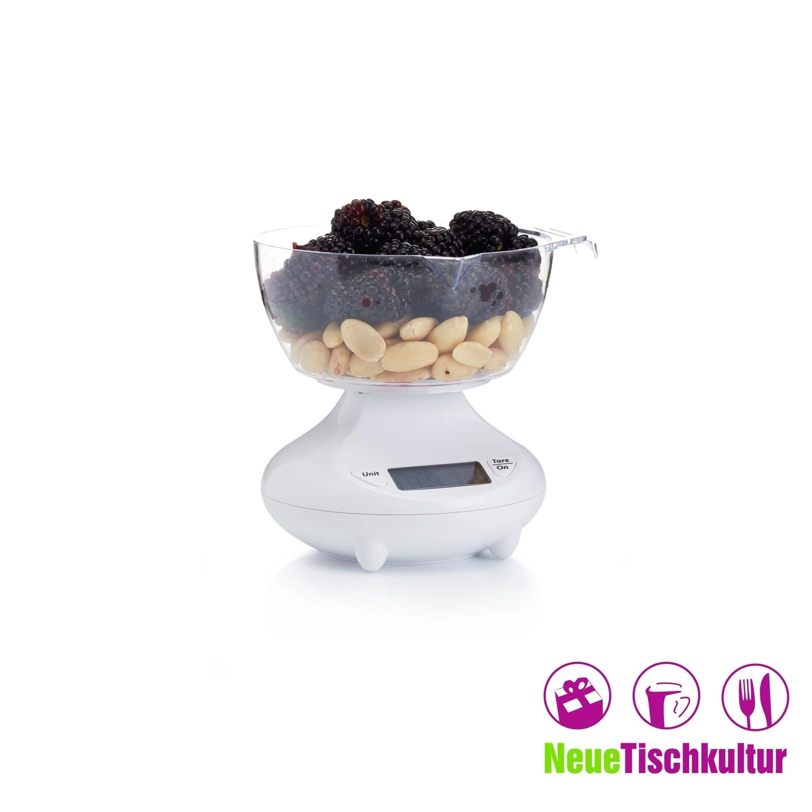 Diese kompakte Diätwaage ist ideal zum Wiegen kleinerer Portionen und Zutaten im Rahmen einer kalorienkontrollierten Ernährung und verfügt über eine Add’n’Weigh-Funktion, die die Anzeige nach jeder hinzugefügten Zutat auf Null zurückstellt. Von der Kontrolle der Portionsgrößen bis hin zum genauen Abmessen von Rezepten erleichtert diese elektronische Waage das Abwiegen von Lebensmitteln und Flüssigkeiten.Die Waage ist elektronisch, also batteriebetrieben (2 x AAA Batterien nicht im Lieferumfang enthalten). Die Waage kann bis zu 1 kg abwiegen. Maße: B/T/H 12,5 x 14 x 14 cm