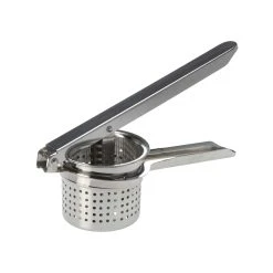 Ein Küchenhelfer, der in keiner Küche fehlen sollte! Lust auf hausgemachte Spätzle? Ein leckeres und gesundes Kartoffel- oder Gemüsepüree? Oder doch lieber ein Spaghettieis? Alles kein Problem mit dieser universell einsetzbaren Kartoffelpresse! Die hochwertige Edelstahlverarbeitung ermöglicht eine kinderleichte Reinigung – einfach in die Spülmaschine und fertig! Dank der leichten Handhabung ist die Kartoffelpresse ideal für den schnellen Einsatz und die Zubereitung Ihrer gewünschten Speisen. Maße: Ø 8 cm Länge 25 cm