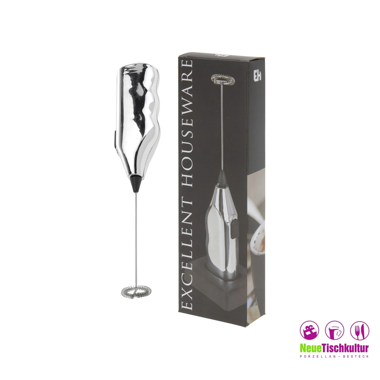 Elektrischer Milchaufschäumer wird Ihnen bei der Zubereitung von Cappuccino, Latte Macchiato und heißer Schokolade helfen. Gehäuse aus Kunststoff. Im Lieferumfang ist auch ein Kunststoffständer enthalten. Material: Kunststoff und Metall, Maße: 4 x 20 x 3 cm. Mit 2 x AA-Batterie 1,5V betrieben (nicht im Lieferumfang enthalten).