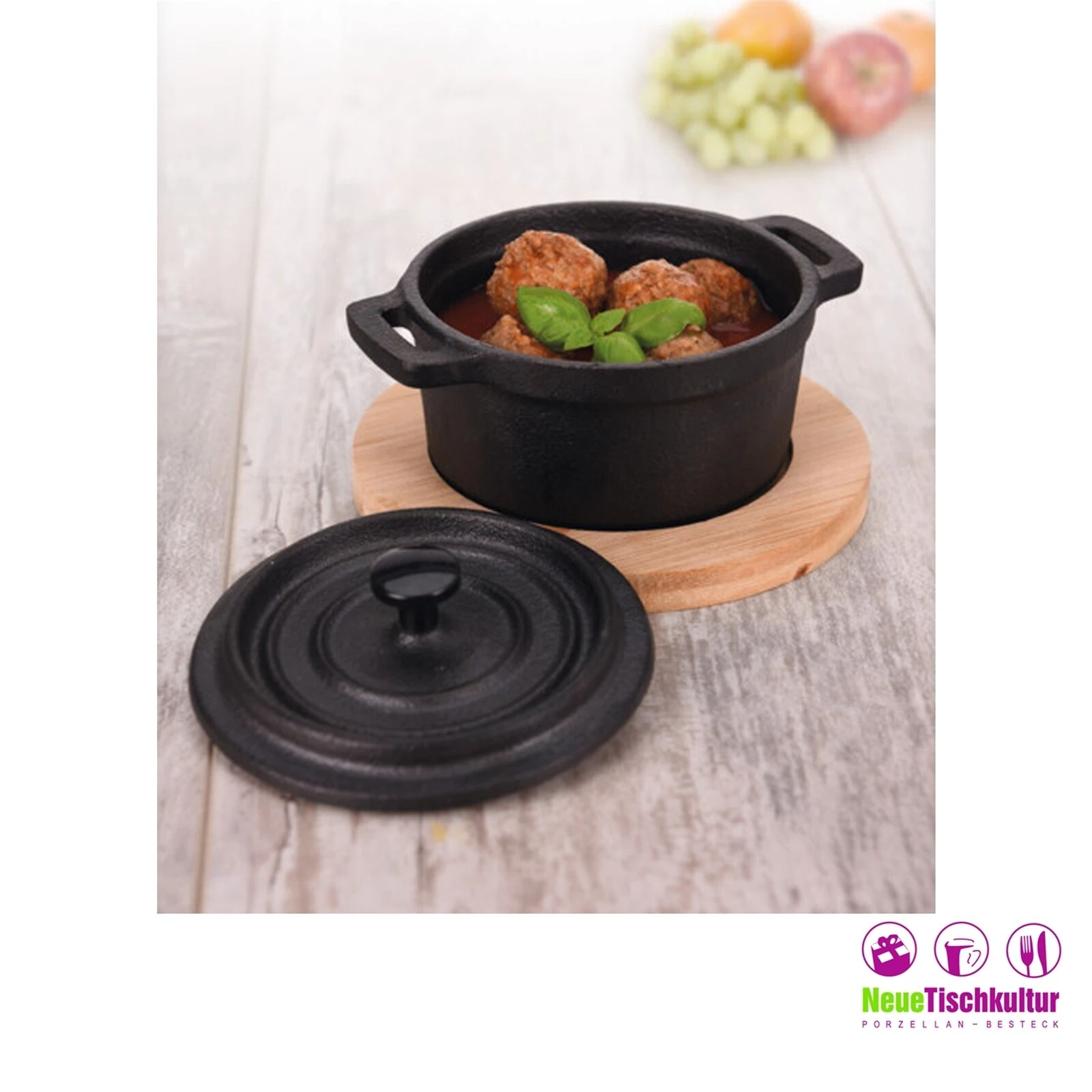 - Weitere Beschreibung: Minitopf Gusseisentopf Servierbrett
