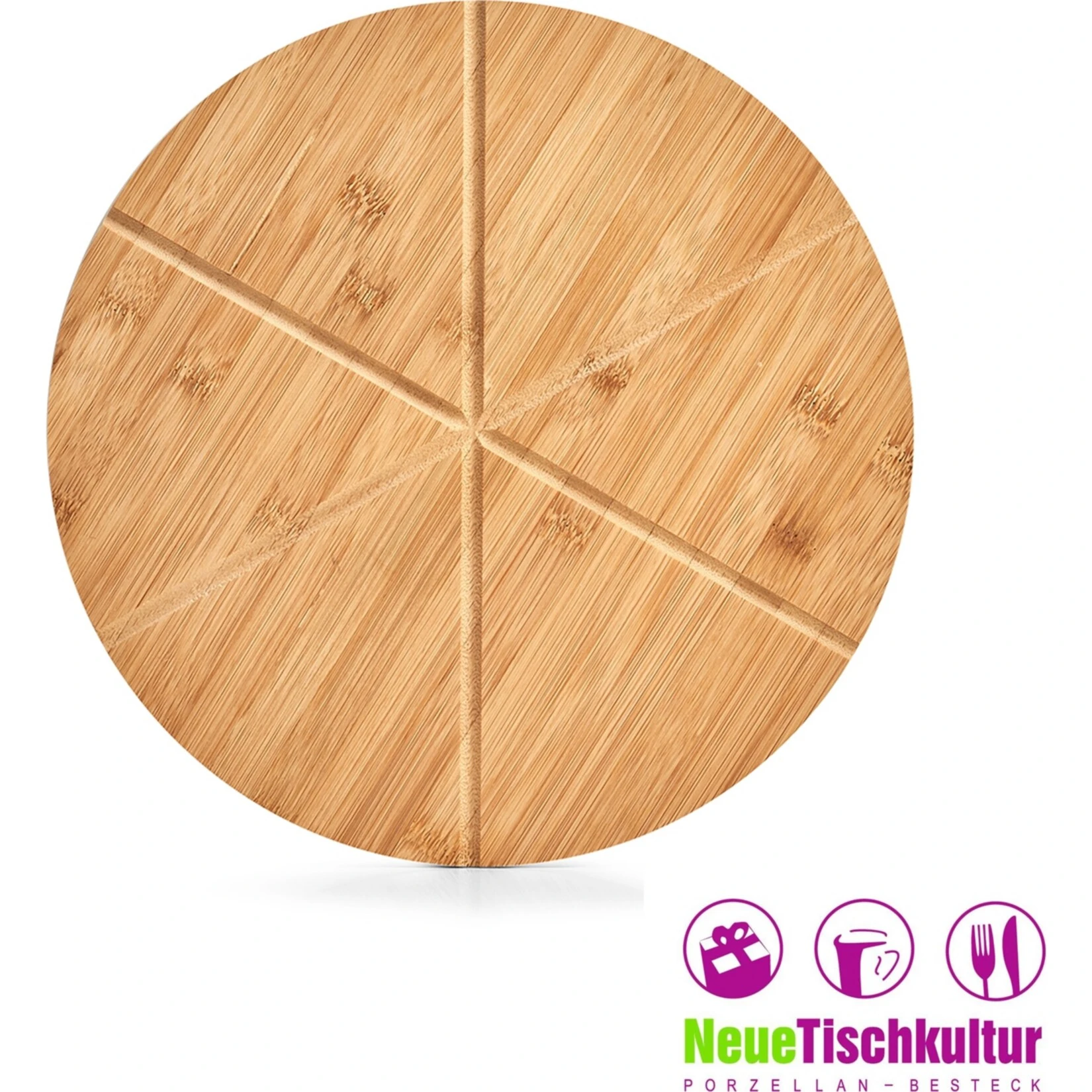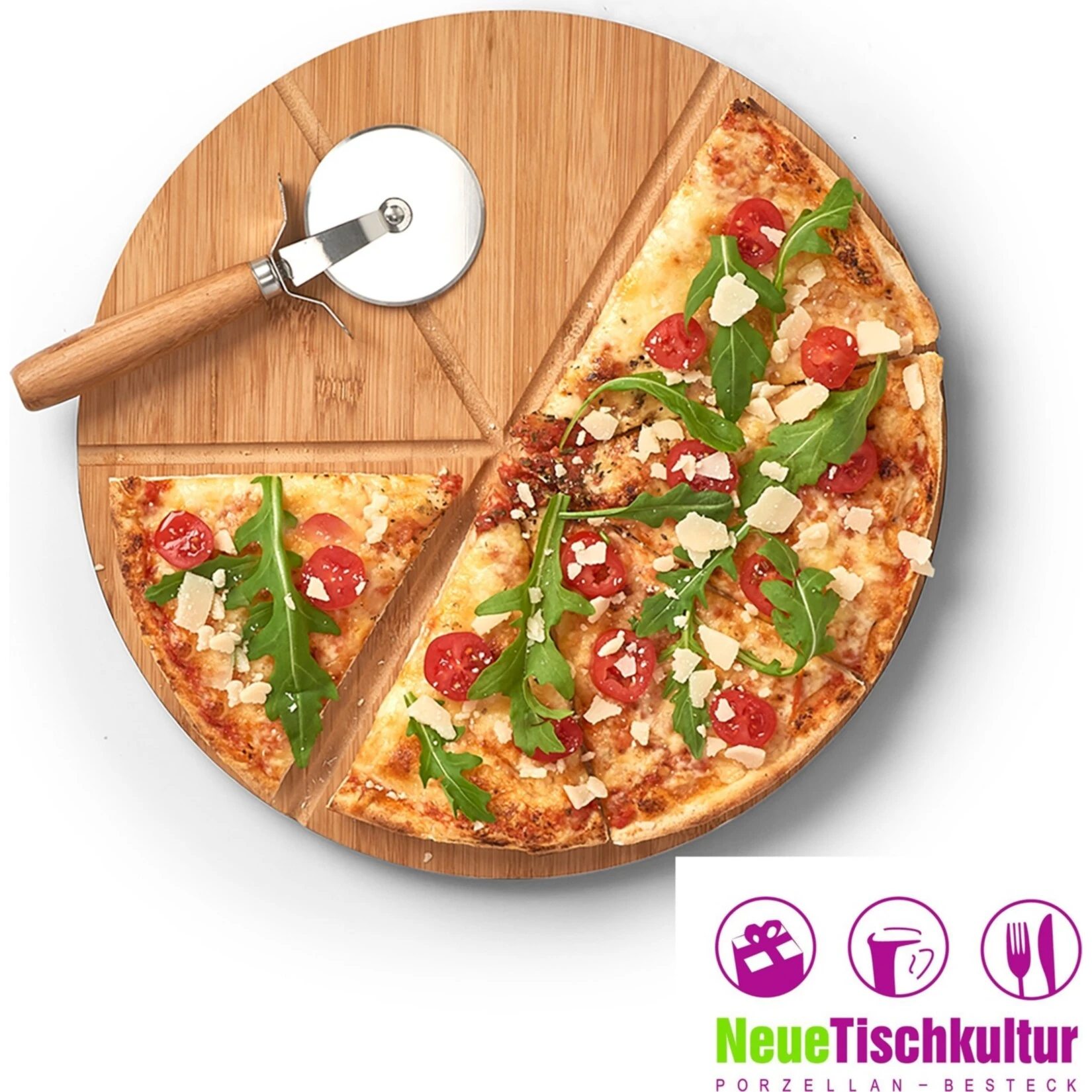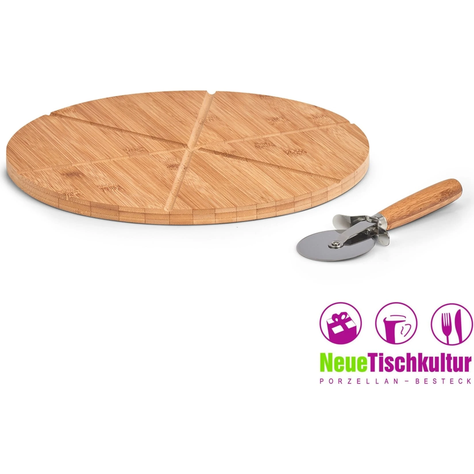 Mit diesem Schneidbrett und dem dazugehörigen Pizzaschneider haben Sie alles, um Ihre Lieblingspizza genießen zu können. Dank der Einteilung auf der Schneidfläche erhalten Sie gleichgroße Stücke. Maße Schneidebrett Ø 32 x 1,5 cm, Pizzaschneider Ø 7 cm