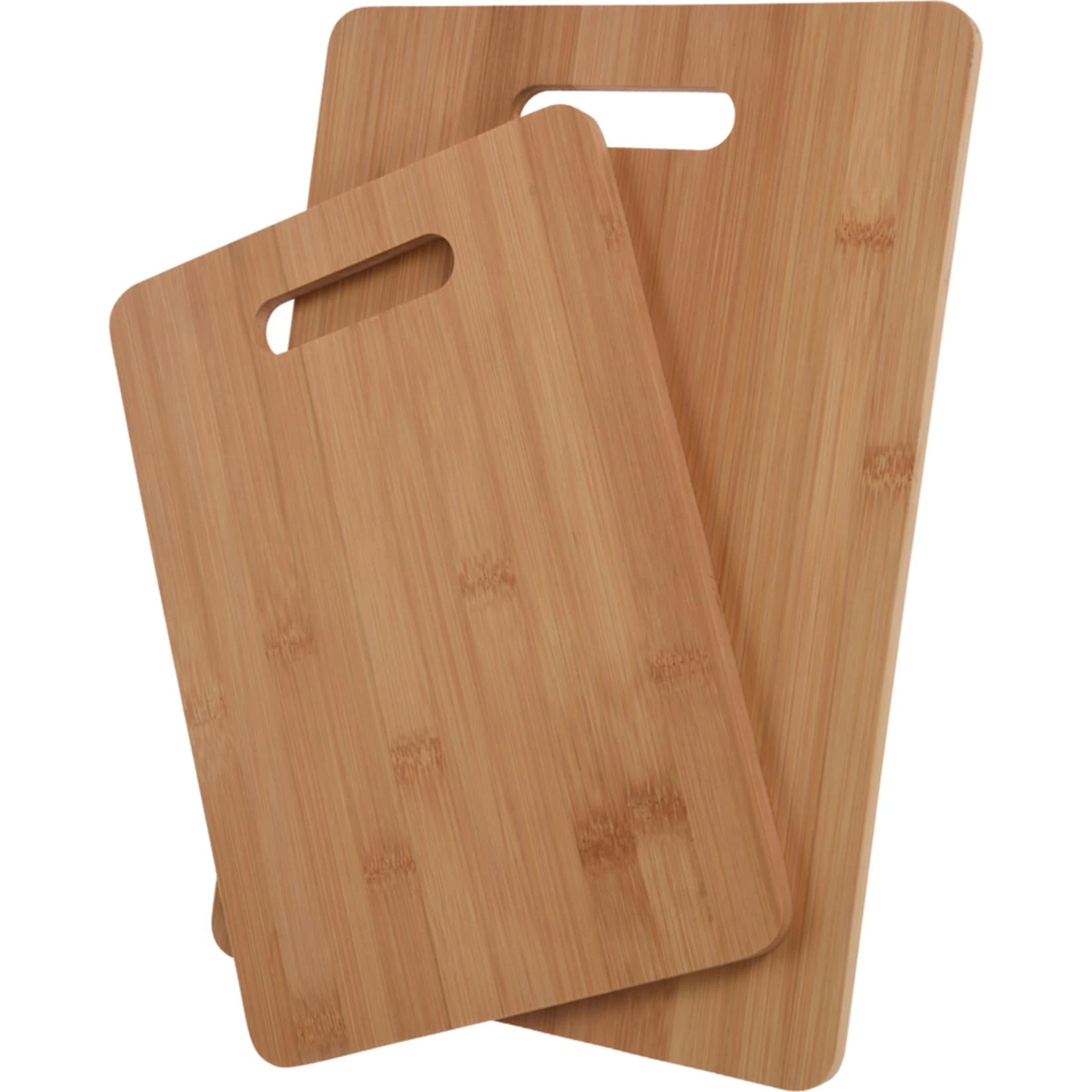 Set mit 2 Bambus-Schneidebrettern mit einer Stärke von 1 cm. Bambus ist feuchtigkeits-resistens, stabil und verträglich. Die beiden Frühstücksbrettchen haben verschiedene Größen: Brett klein L/B/H 28 x 20 x 1 cm, Brett groß L/B/H 33 x 23 x 1 cm
