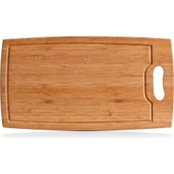 Das klassische Schneidebrett aus Bambus bietet die ideale Grundlage zum Schneiden, Anrichten und Servieren Ihrer Lebensmittel. Die umschließende Saftrille und der Griff ermöglichen eine einfache Handhabung. Nach Gebrauch können Sie das Brett einfach mit warmen Wasser und einem Tuch abwischen. Das Schneidebrett zeichnet sich durch eine hygienische, schnittfeste und messerschonende Oberfläche aus. Maße 45 x 24,5 x 1,8 cm