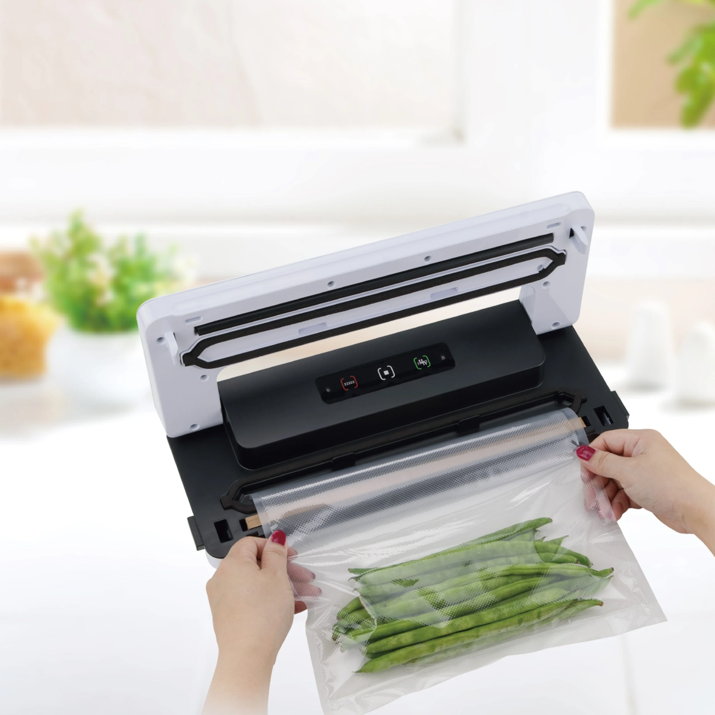 HIGHLIGHT: Lebensmittel bleiben vakuumiert bis zu 8x länger frisch – ganz natürlich ohne Konservierungsstoffe. Frisches Fleisch, Obst oder Gemüse zur Lagerung im Kühl- oder Gefrierschrank vakuumieren. Vitamine und Mineralien erhalten – bester Schutz vor G