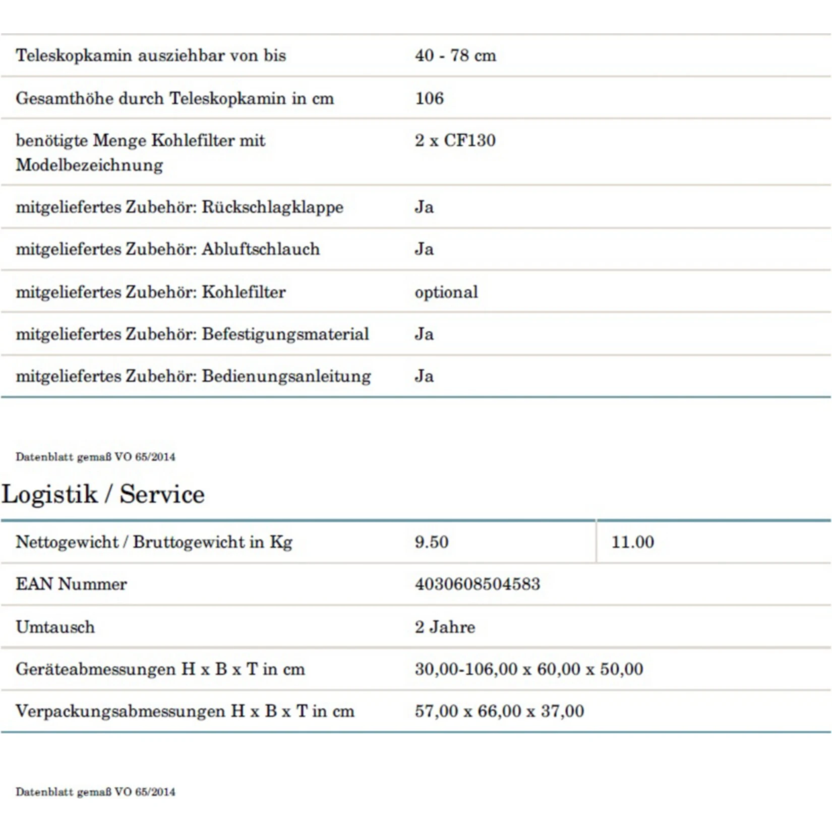 Gesamthöhe durch Teleskopkamin: 108,00 cm