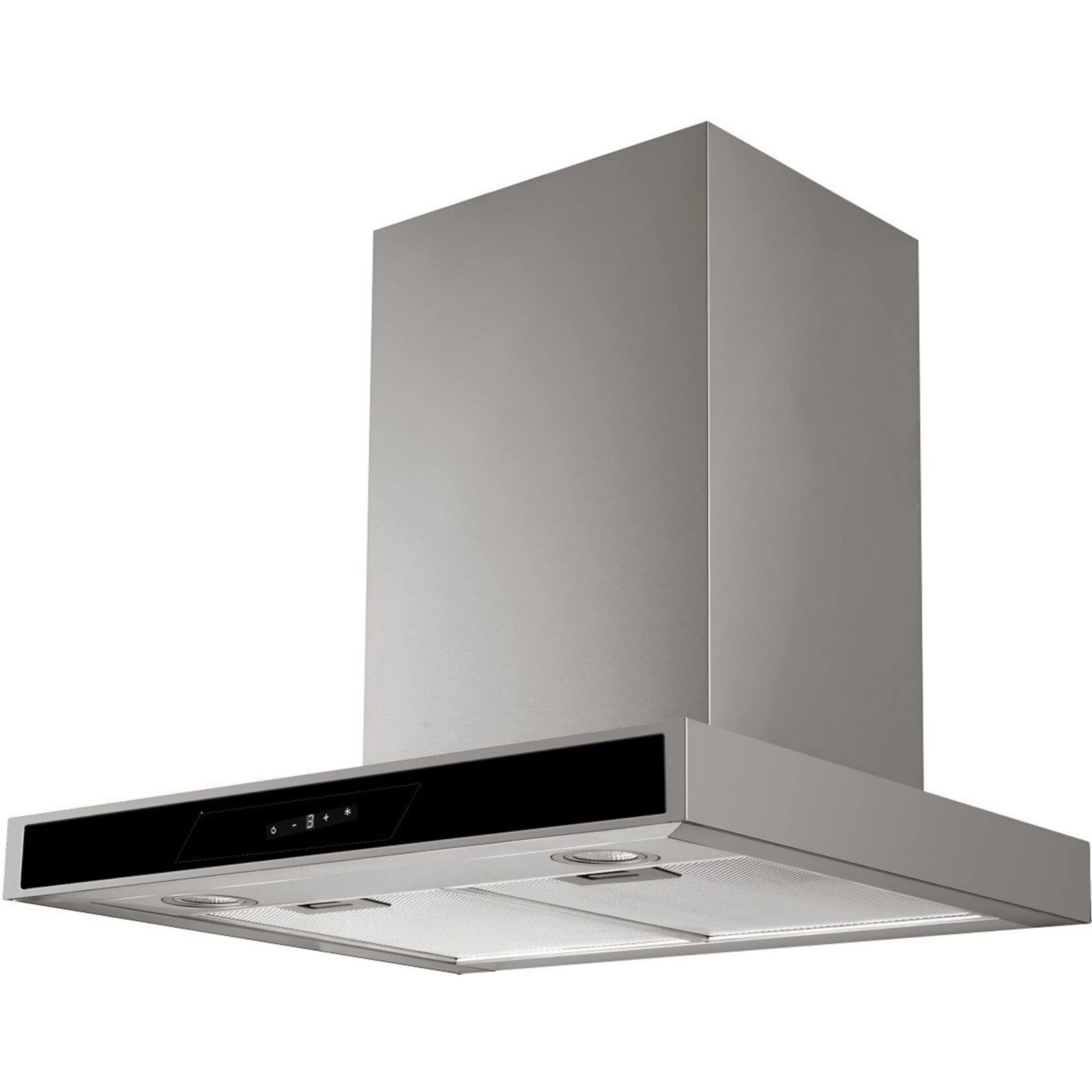 Kamin-Dunstabzugshaube aus Edelstahl mit schwarzem Glas und waschbaren Metallfettfiltern (Spülmaschinenfest).