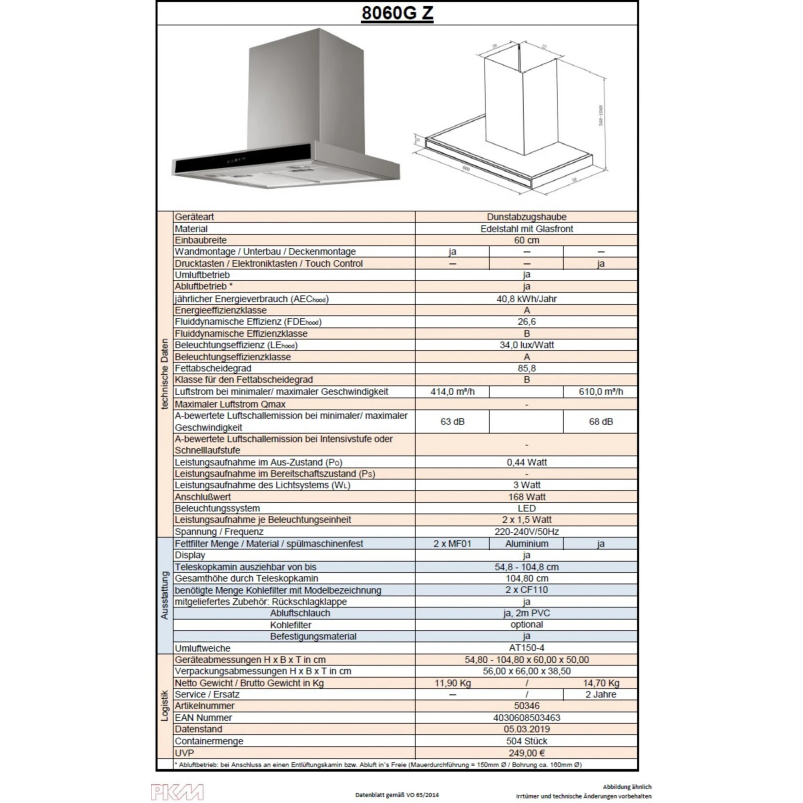 PKM 8060G Z Dunstabzugshaube Edelstahl Glas