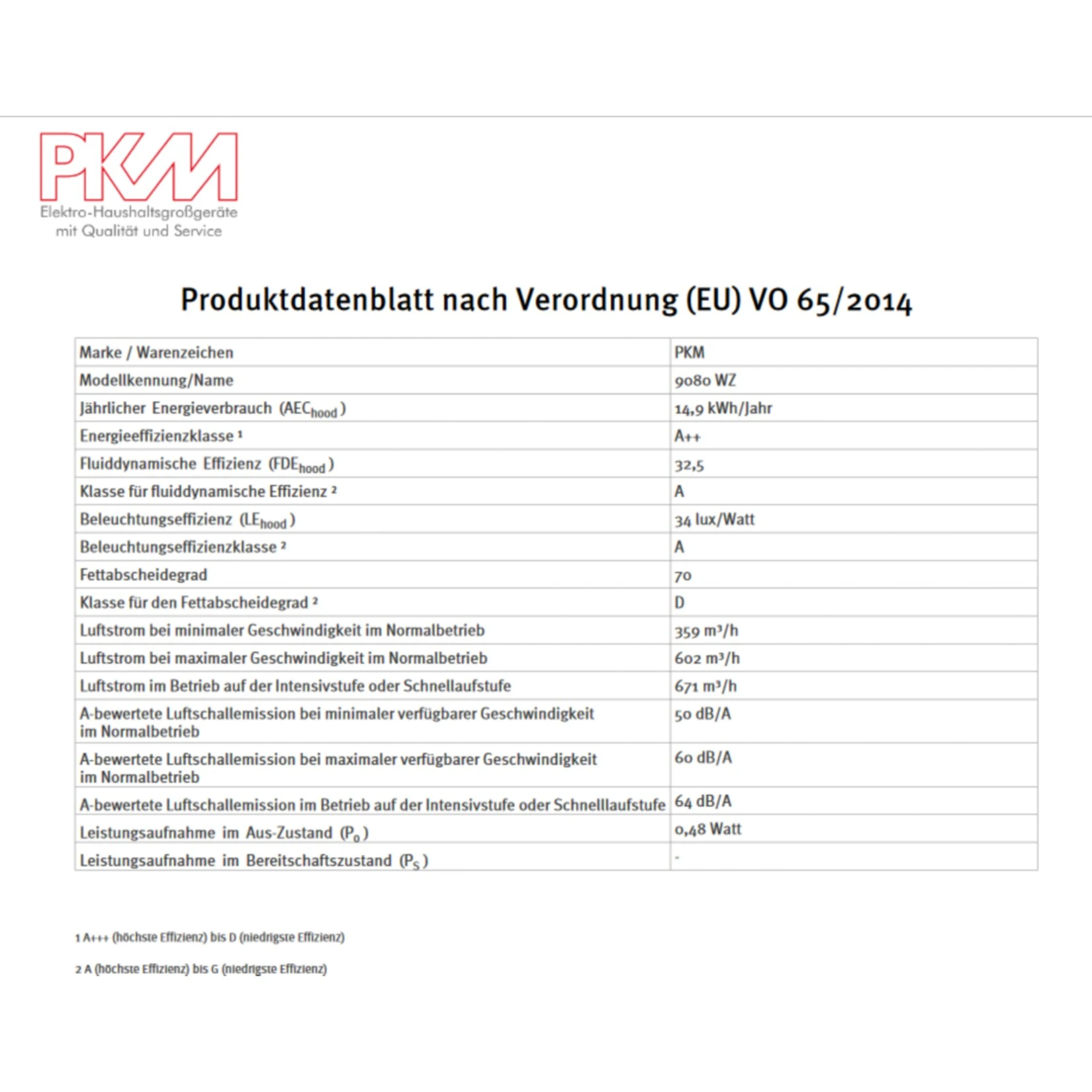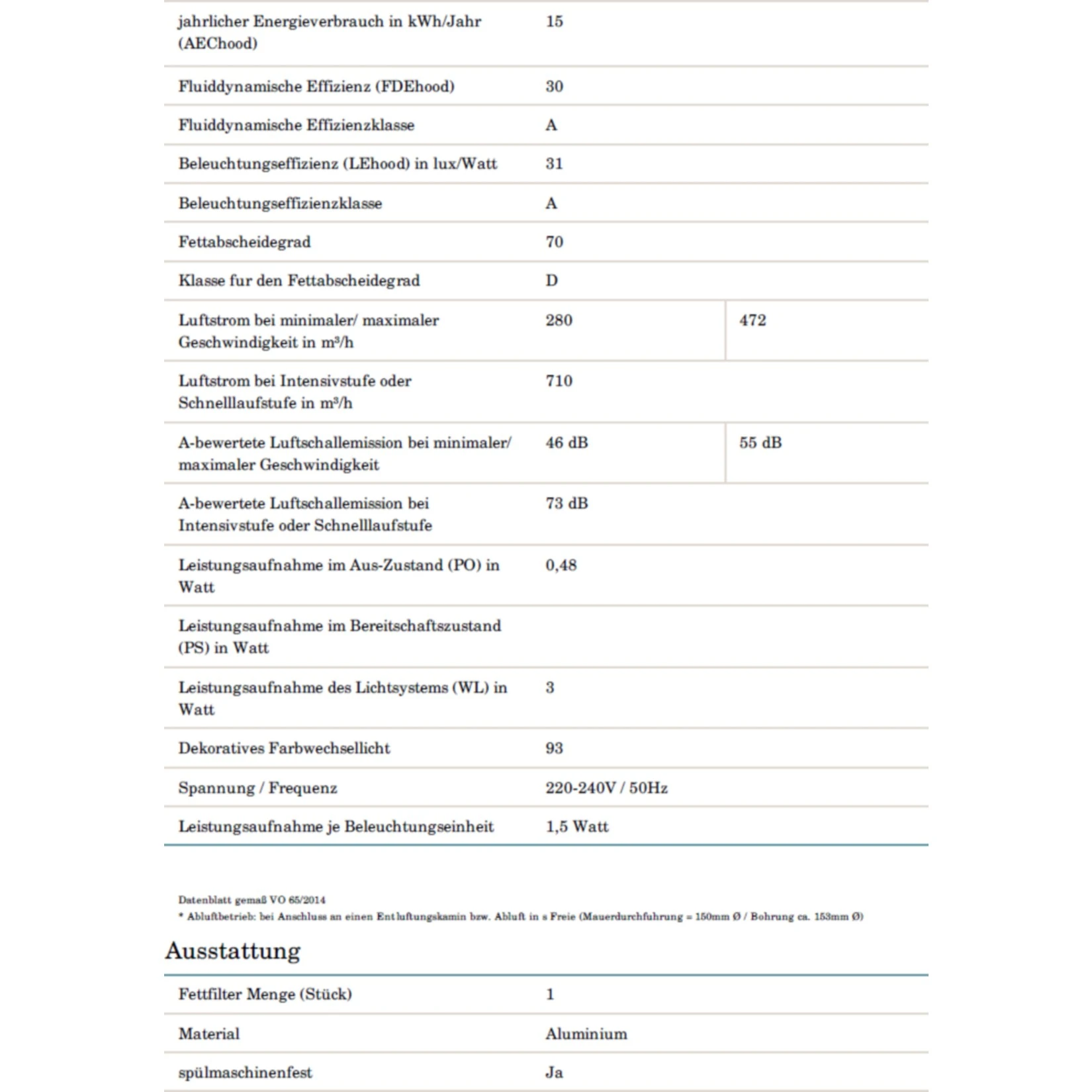 jährlicher Energieverbrauch (AEChood): 14,9 kWh/Jahr