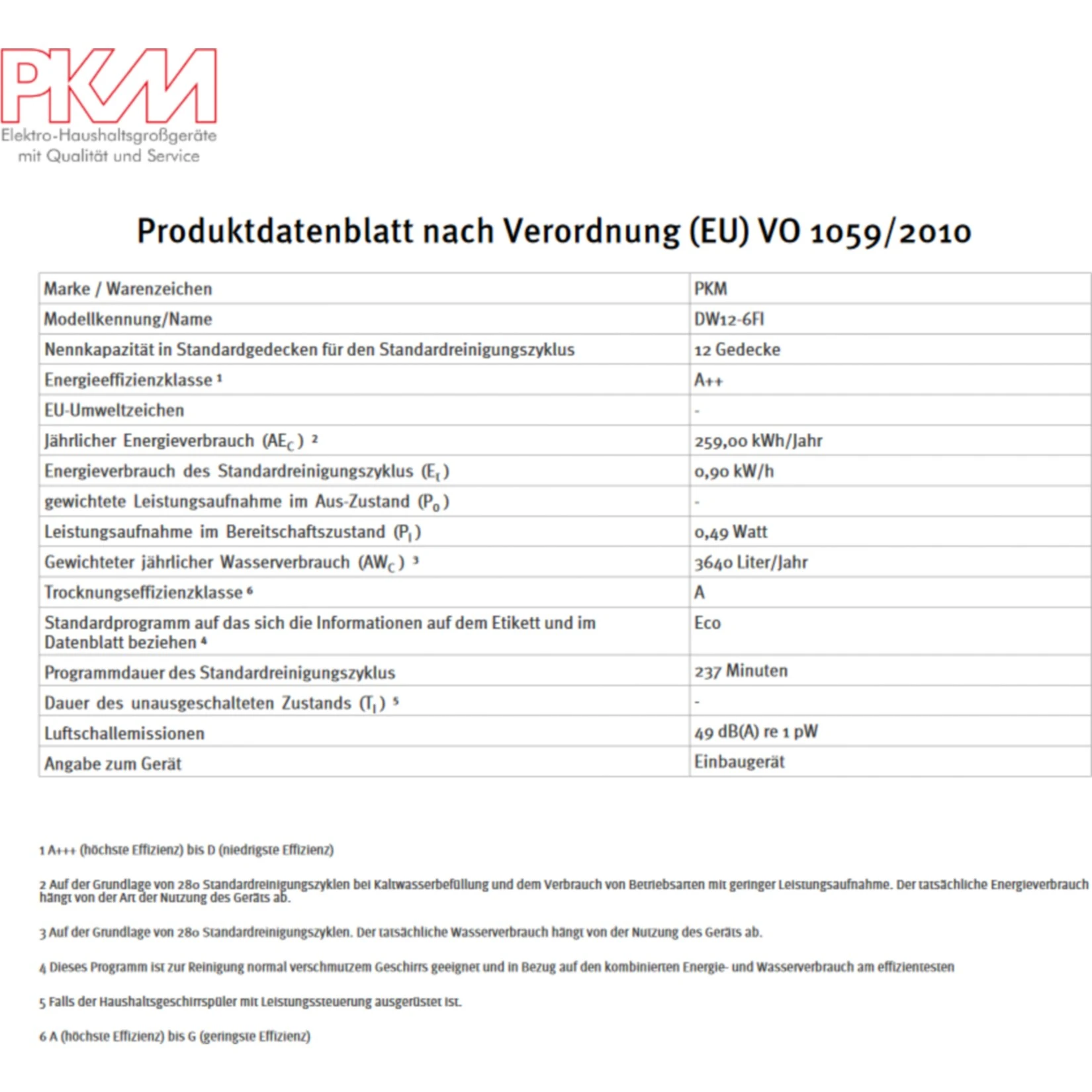 PKM DW12-6FIA++ Geschirrspüler vollintegriert