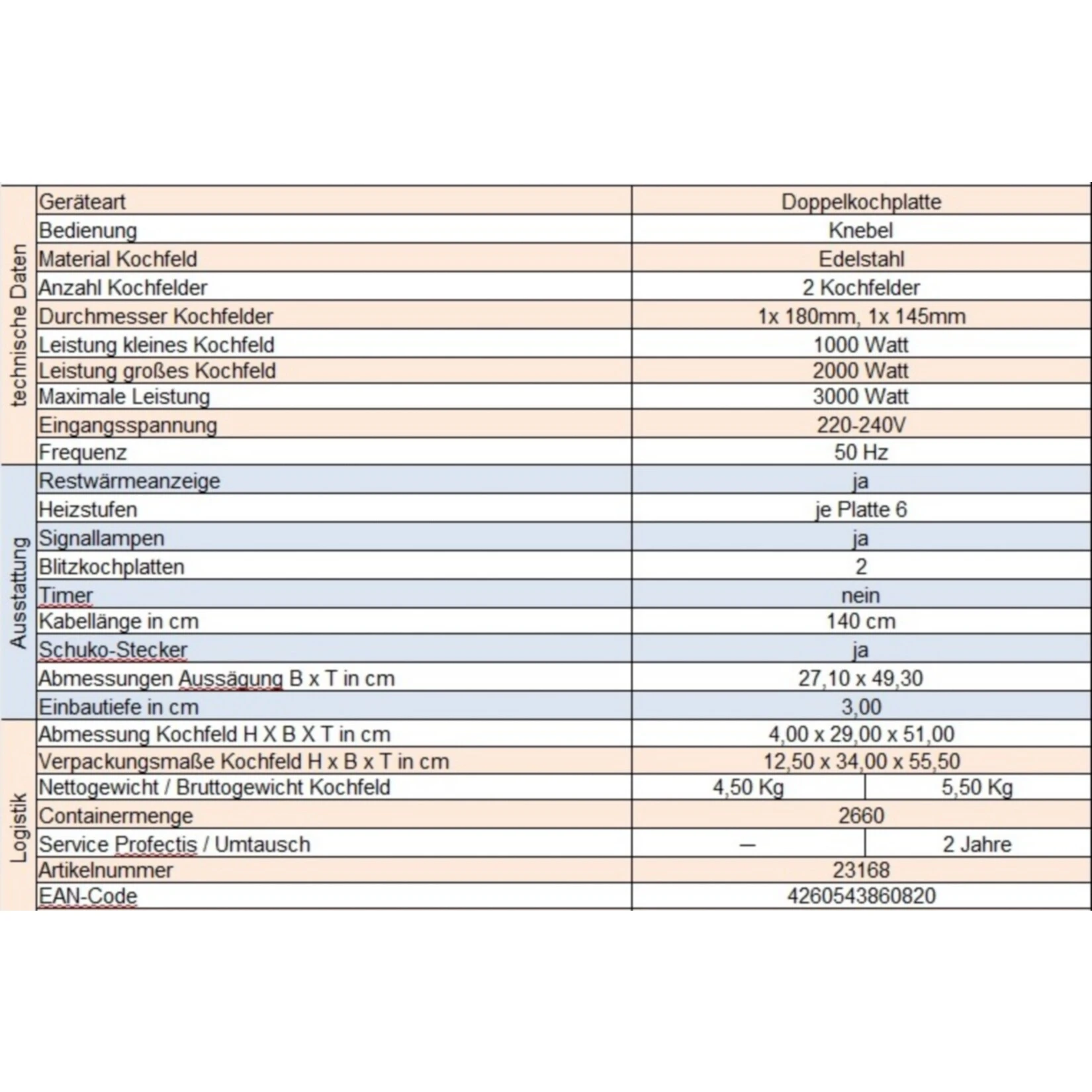 Geräteart: Doppelkochplatte