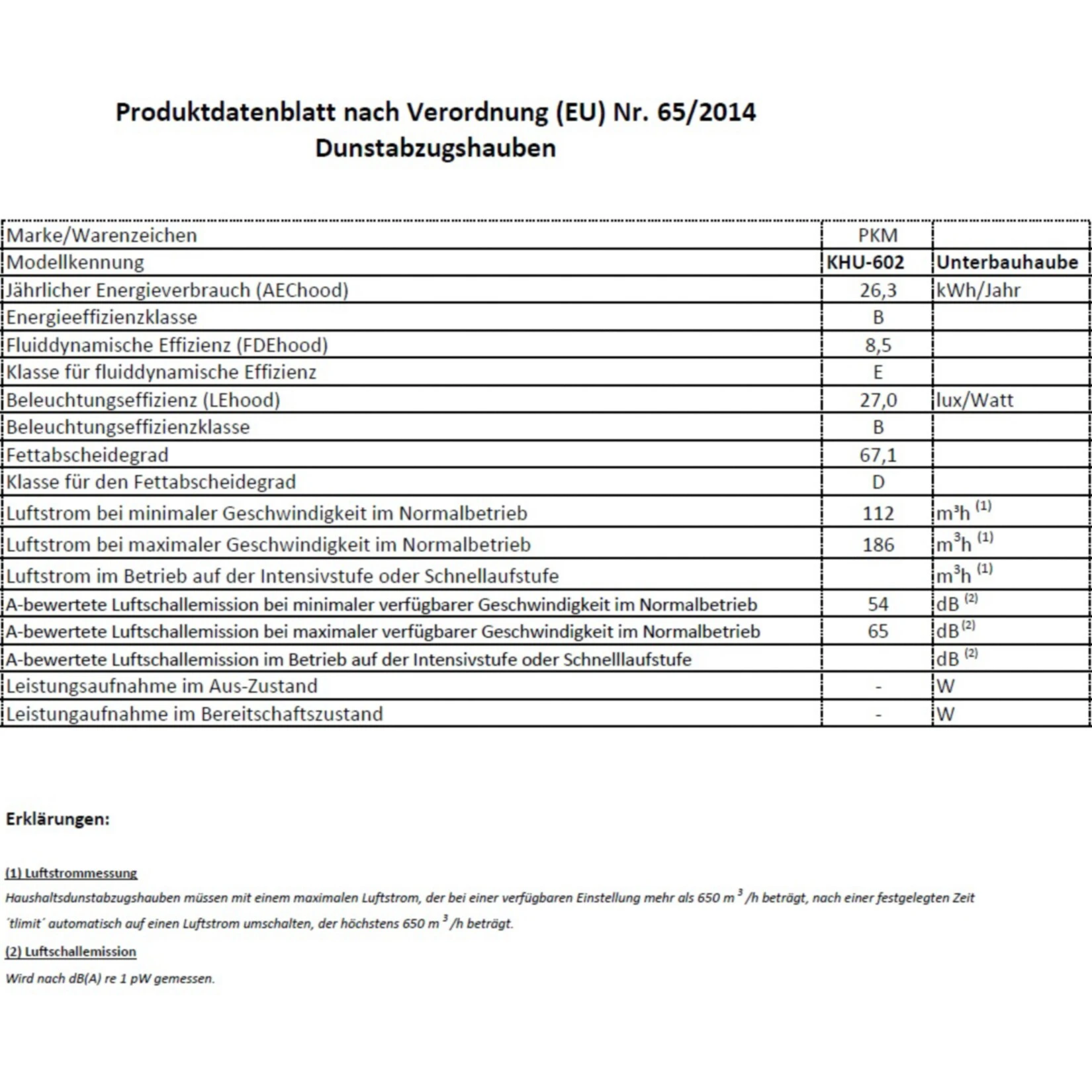 jährlicher Energieverbrauch (AEChood): 26,3 kWh/Jahr