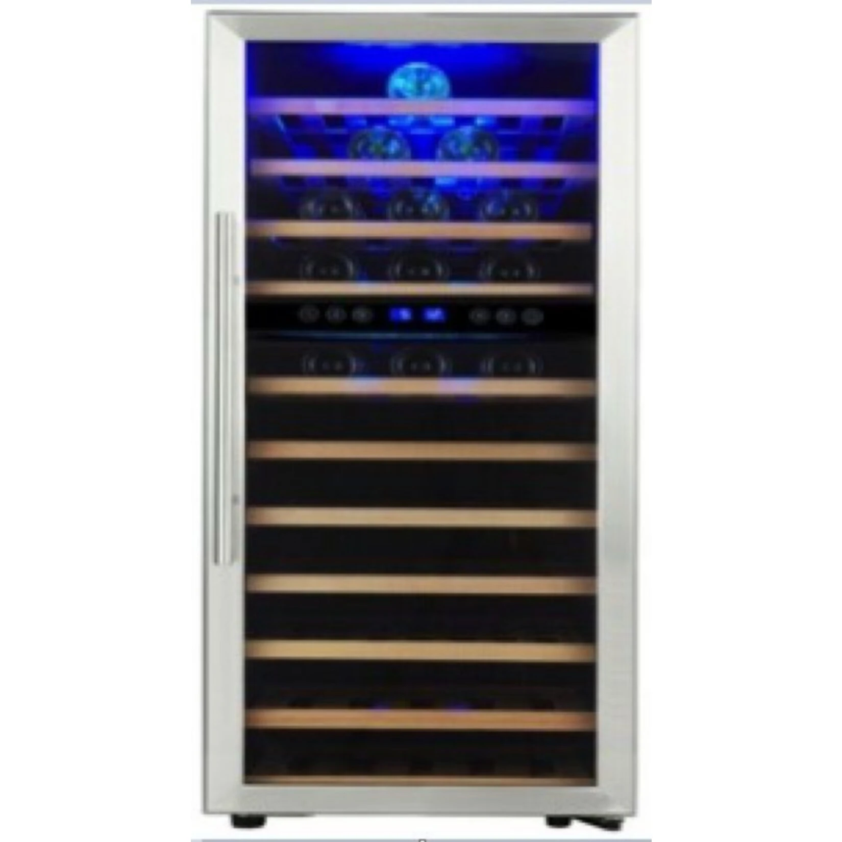 Dieser Weinkühlschrank zeichnet sich durch sein schönes Design aus. Er besitzt eine Glastüre mit einem Rahmen aus gebürstetem Edelstahl und einem großen Edelstahlgriff. Im Inneren können Sie Ihre Weinflaschen gut sichtbar in den edlen Holzregalen lagern.