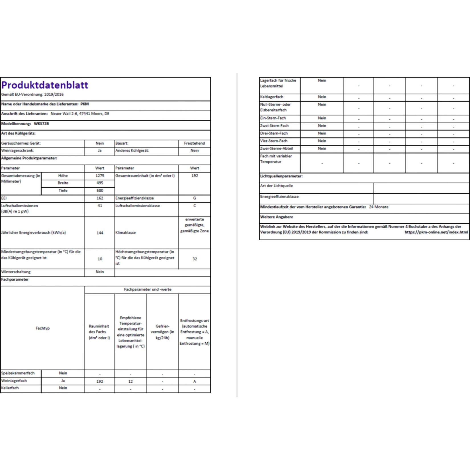 PKM WKS72B Weintemperierschrank Weinkühlschrank