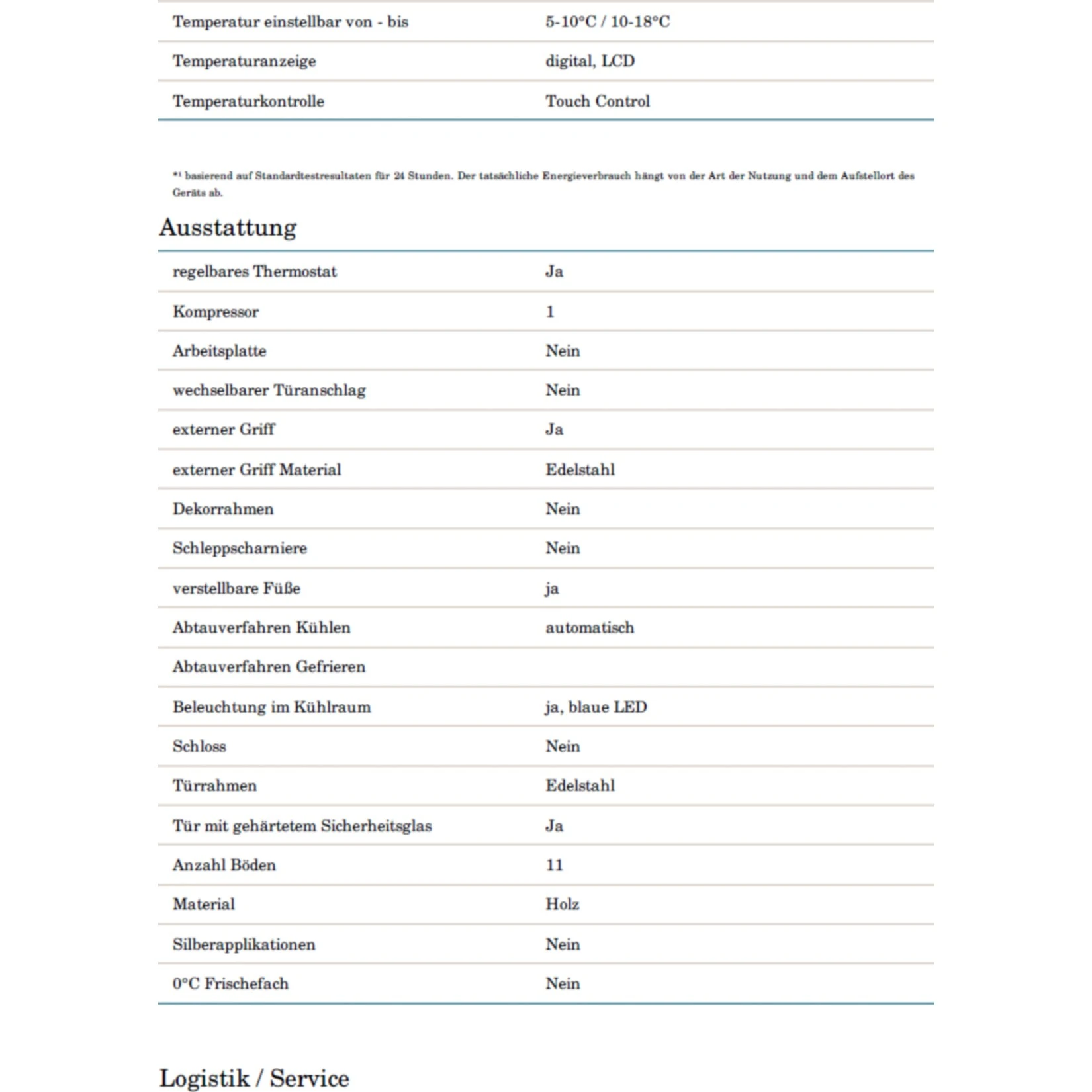 Fassungsvermögen: 73 Flaschen