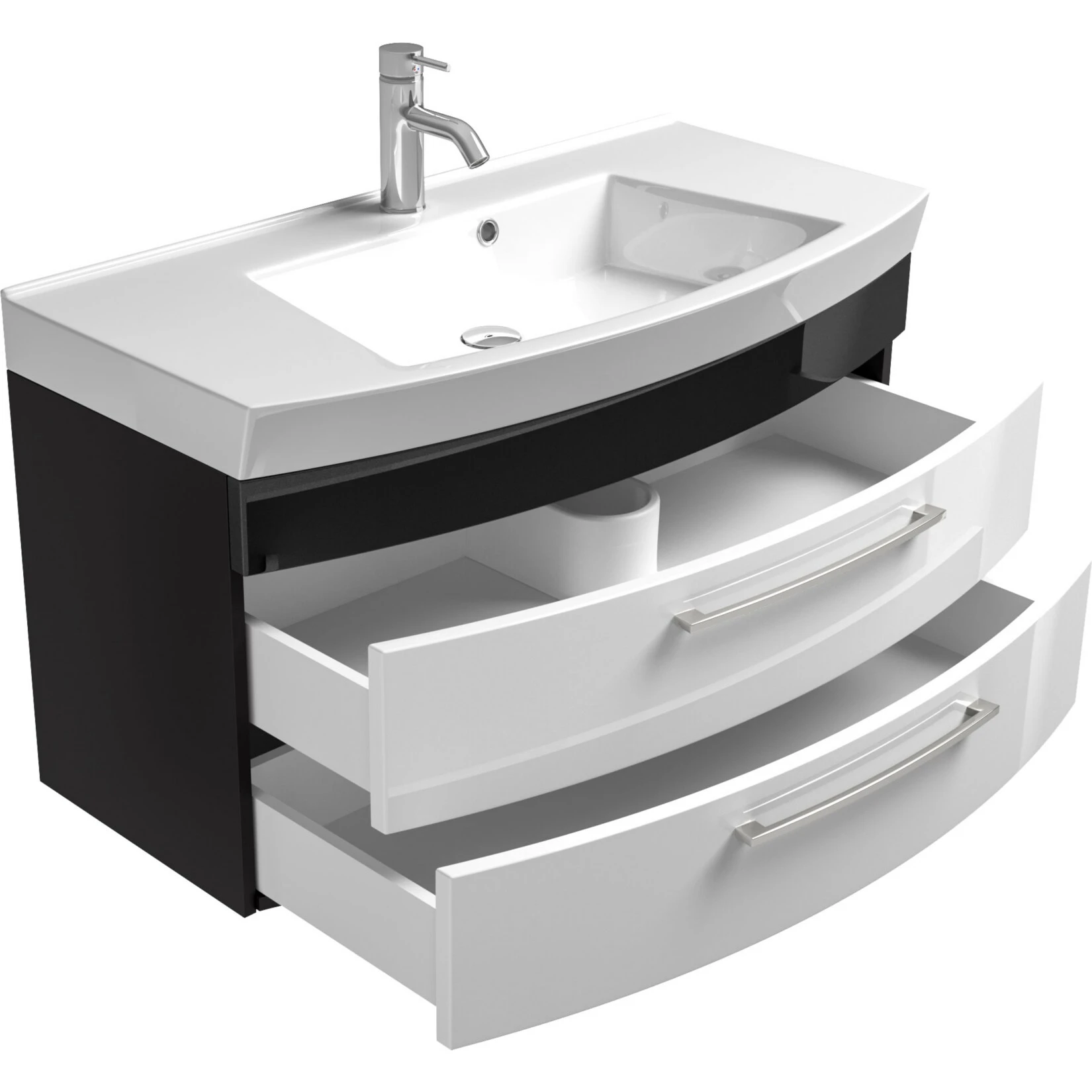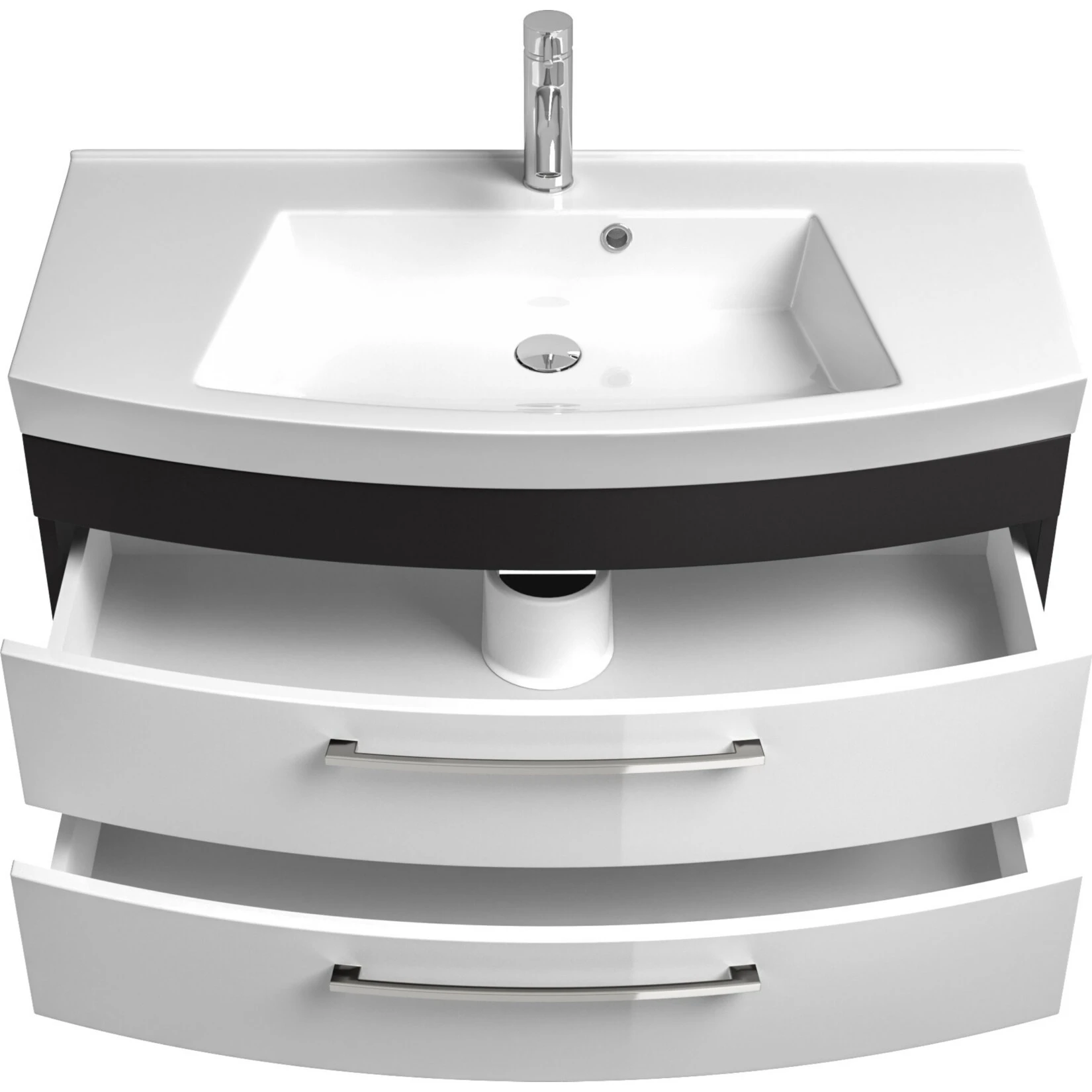 - Der Schrank verfügt über 2 Schubladen mit integrierten Siphon – Ausschnitt und Echtmetallgriffe.
