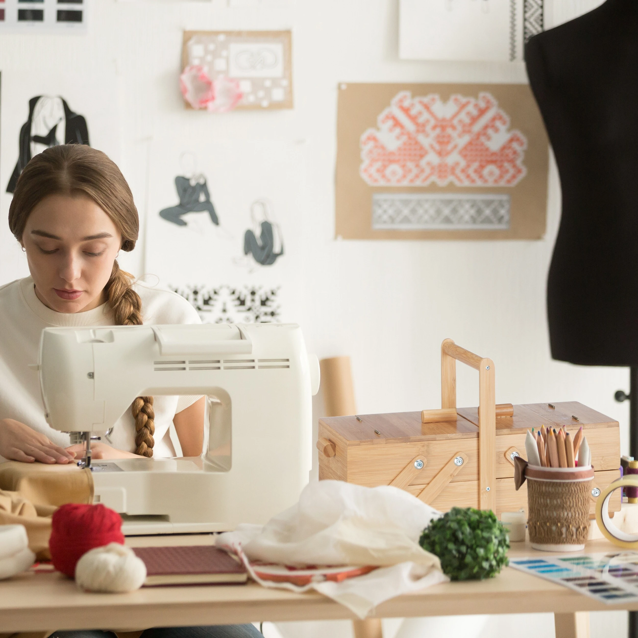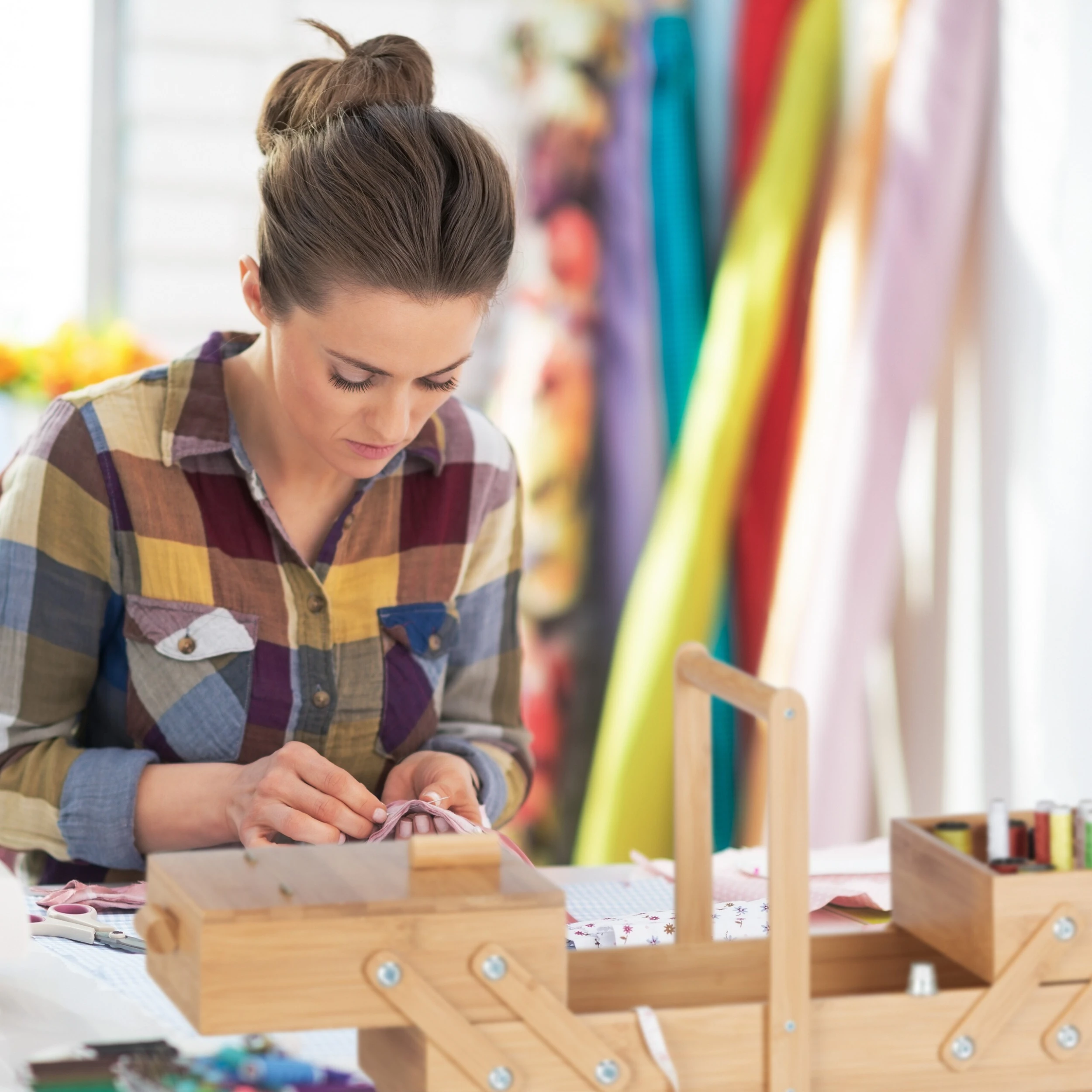 Gefüllt mit Garnrollen, Spulen, verschiedenen Nadeln und anderen Nähutensilien ist die Nähbox eine kreative Geschenkidee für Nähbegeisterte.
