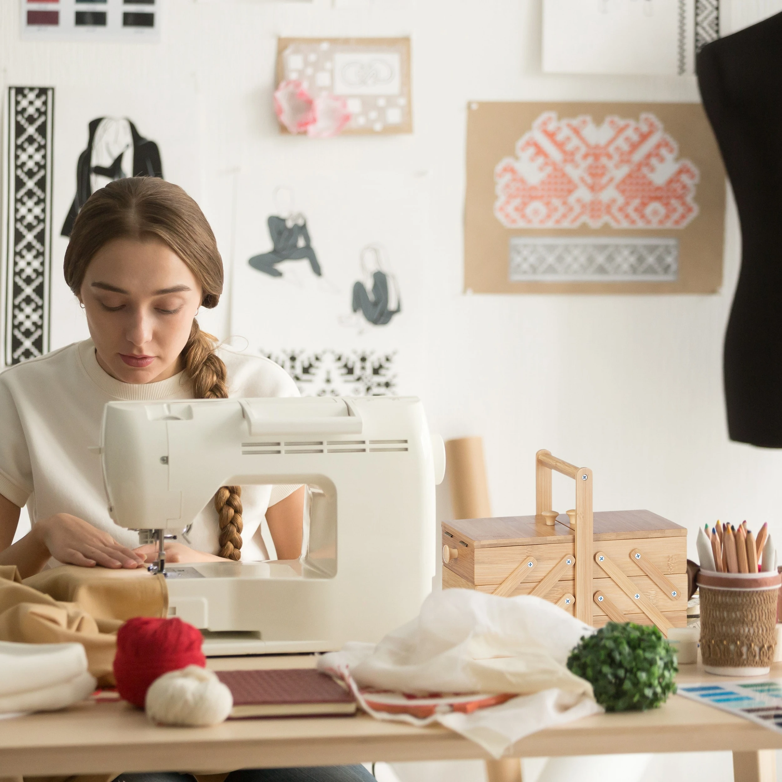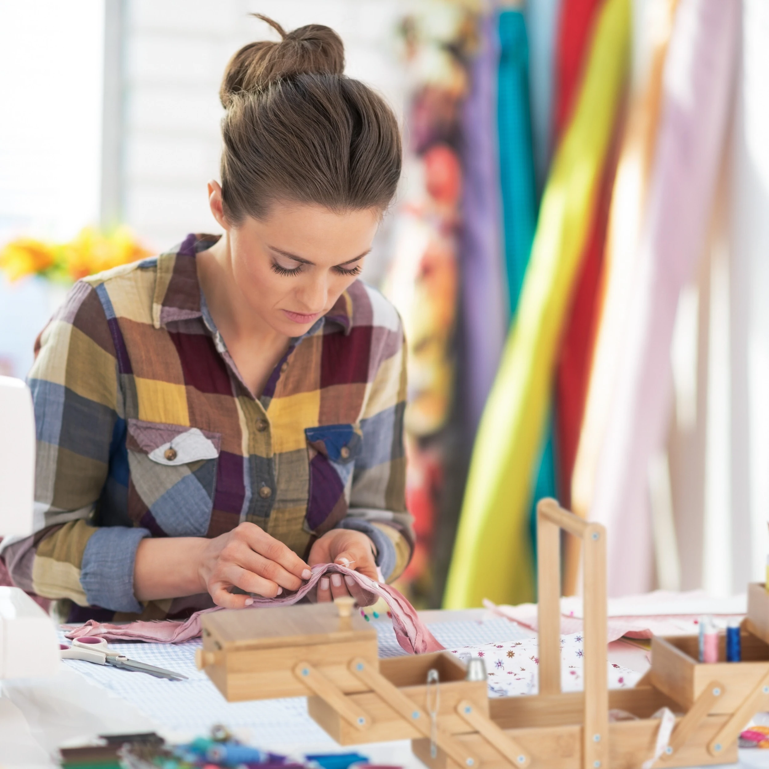Gefüllt mit Garnrollen, Spulen, verschiedenen Nadeln und anderen Nähutensilien ist die Nähbox eine kreative Geschenkidee für Nähbegeisterte.