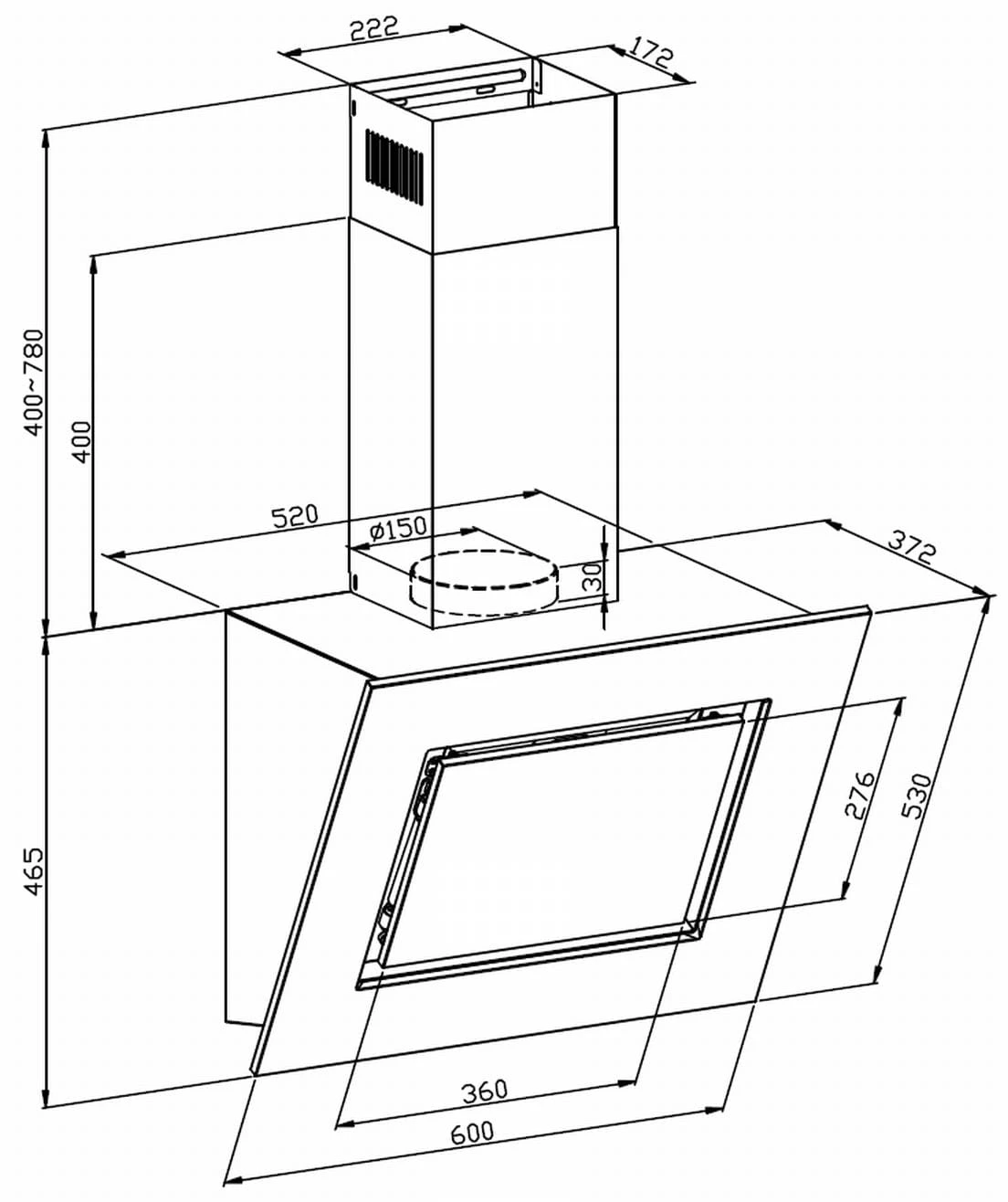 respekta Schräghaube blacksteel CH42060BSA