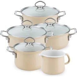 - Lieferumfang: Set bestehend aus: Fleischtopf mit Glasdeckel 16 cm 1,5L, 20 cm 3,5L, Kasserolle mit Glasdeckel 16 cm 1L, 20 cm 2L, Schnabeltopf 12 cm 1L