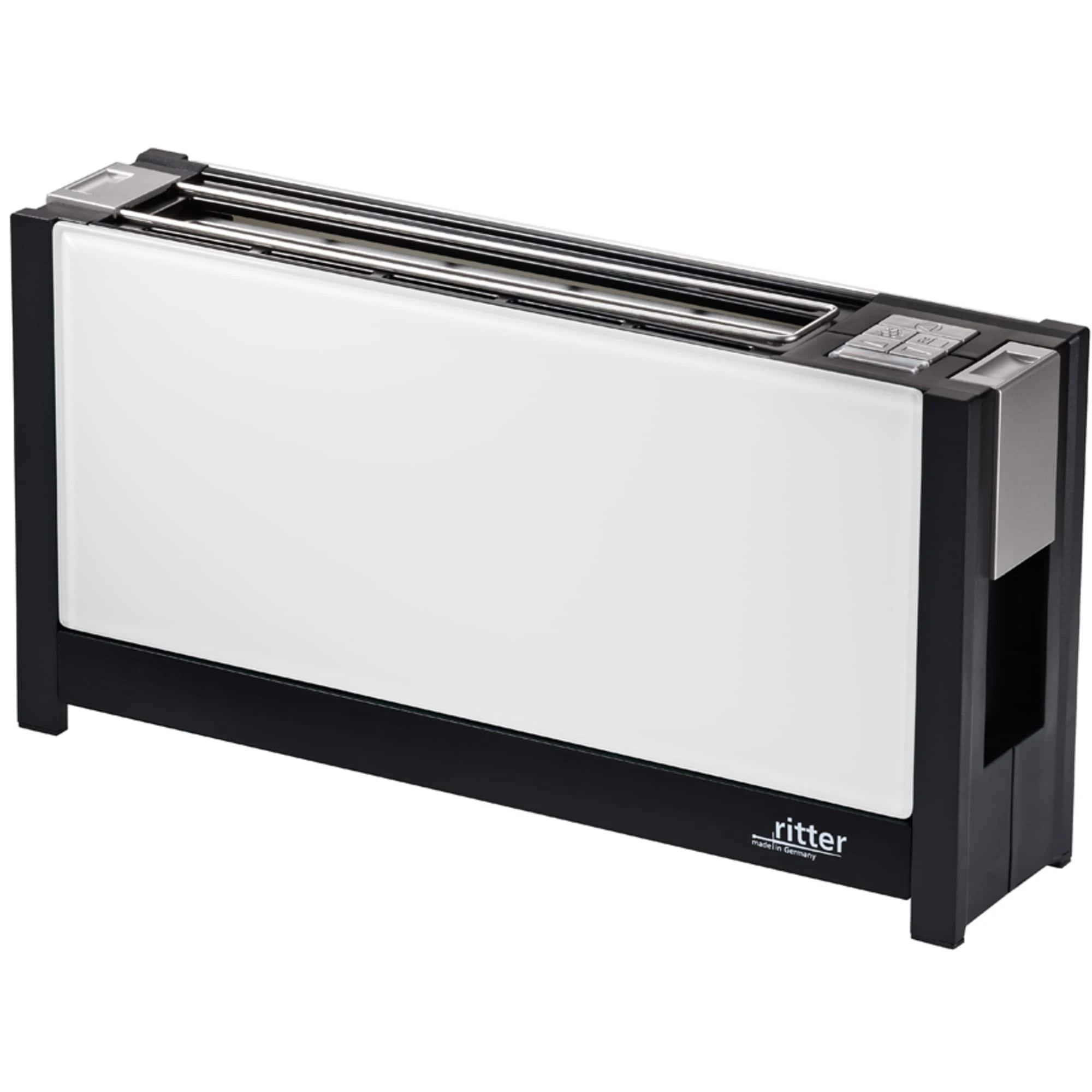 Mit nur knappen 9 cm Breite ist der elegante Langschlitztoaster volcano 5 unvergleichbar schmal und ein echter Hingucker in jeder Küche. Die edlen Glasfronten in weiß verleihen dem Toaster zudem ein exklusives Äußeres. Hochwertige Materialien und eine perfekte Verarbeitung sorgen beim volcano 5 für eine hohe Lebensdauer. Mit volcano 5 können zwei Toastscheiben gleichzeitig geröstet werden, die durch eine Röstgutzentrierung gleichmäßig gebräunt werden. Ganz nach Geschmack kann der Röstgrad des Brotes in neun Bräunungsstufen eingestellt werden. Der eingestellte Röstgrad wird digital über LED’s angezeigt und bleibt durch eine Memoryfunktion beim nächsten Röstvorgang erhalten und muss somit nicht immer aufs Neue eingestellt werden – dies gilt auch für den Fall, dass der Toaster einmal vom Netz getrennt wird. Während des Röstvorgangs erlöschen die LED`s schrittweise mit Fortschreiten des Toastvorgangs, sodass die verbleibende Röstzeit leicht einschätzbar ist.