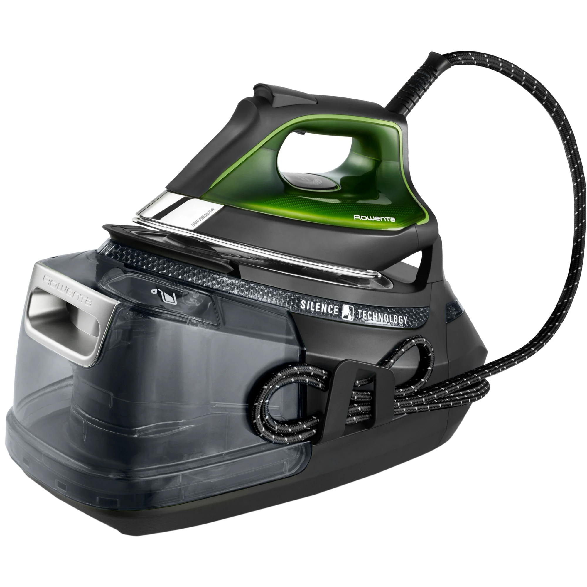 Die Silence Steam Pro DG 9248 von Rowenta ist eine leistungsstarke Dampfbügelstation und entfernt die hartnäckigsten Falten im Handumdrehen. Die Silence Steam Pro sorgt für herausragende Ergebnisse selbst für die anspruchsvollsten Gewebe. Die 8-bar-Hochdruck-Dampfbügelstation bietet einen auf die Präzisionsspitze konzentrierten extra Dampfstoß von 600 g/Min. und meistert so selbst die hartnäckigsten Falten. 5 elektronische Voreinstellungen sorgen für eine perfekte Kombination von Dampf und Temperatur für jedes Gewebe. Der Kalk-Kollektor sorgt für Langlebigkeit.