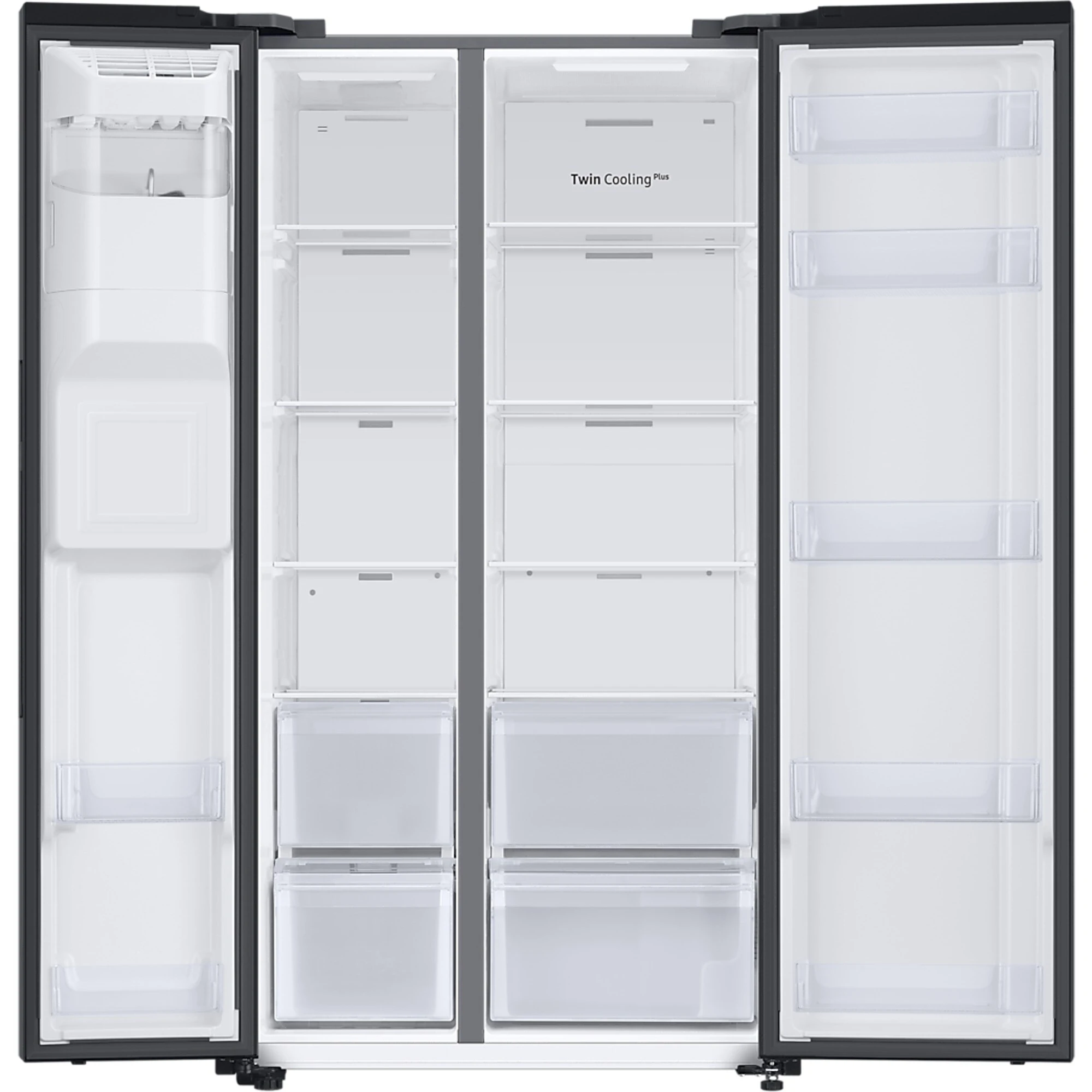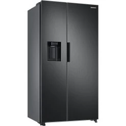 Der Side-by-Side Samsung RS6JA8810B1/EG ist mit einem Gesamtnutzinhalt von 634 Litern optimal für den großen Haushalt geeignet und überzeugt mit diversen Features. Im 409 Liter umfassende Kühlbereich mit Multi-Airflow-System haben frische Lebensmittel auf vier Abstellflächen, in zwei Obst-/Gemüseschubladen sowie in fünf Türfächern jede Menge Platz, um übersichtlich gelagert zu werden. Der Gefrierbereich mit NoFrost+ gegen Eis- und Reifbildung umfasst 225 Liter und ist mit zwei Gefriergutschubladen sowie vier Abstellflächen und zwei Türfächern ausgestattet. Smart Conversion bioetet maximale Flexibilität bei der Kühlung von Lebensmitteln, denn dank Twin Cooling+ lassen sich beide Bereiche des RS6JA8810B1/EG separat ansteuern und man kannst zwischen fünf verschieden Modi auswählen – zum Beispiel, um das linke Gefrierfach als normales Kühlfach zu nutzen, um mehr frische Produkte zu lagern, oder um eine Seite auszuschalten und Energie zu sparen. Darüber hinaus überzeugt der RS6JA8810B1/EG unter anderem mit PowerFreeze- PowerCool-Funktion, Urlaubsschaltung und Smart Sensor. Der platzsparender In-Door Icemaker hält dank Festwasseranschluss jederzeit gekühltes Wasser, Eiswürfel oder Crusehd-Ice auf Knopfdruck parat. Mit einem Stromverbrauch von 395 kWh im Jahr ist der RS6JA8810B1/EG in die Energieeffizienzklasse F eingestuft.