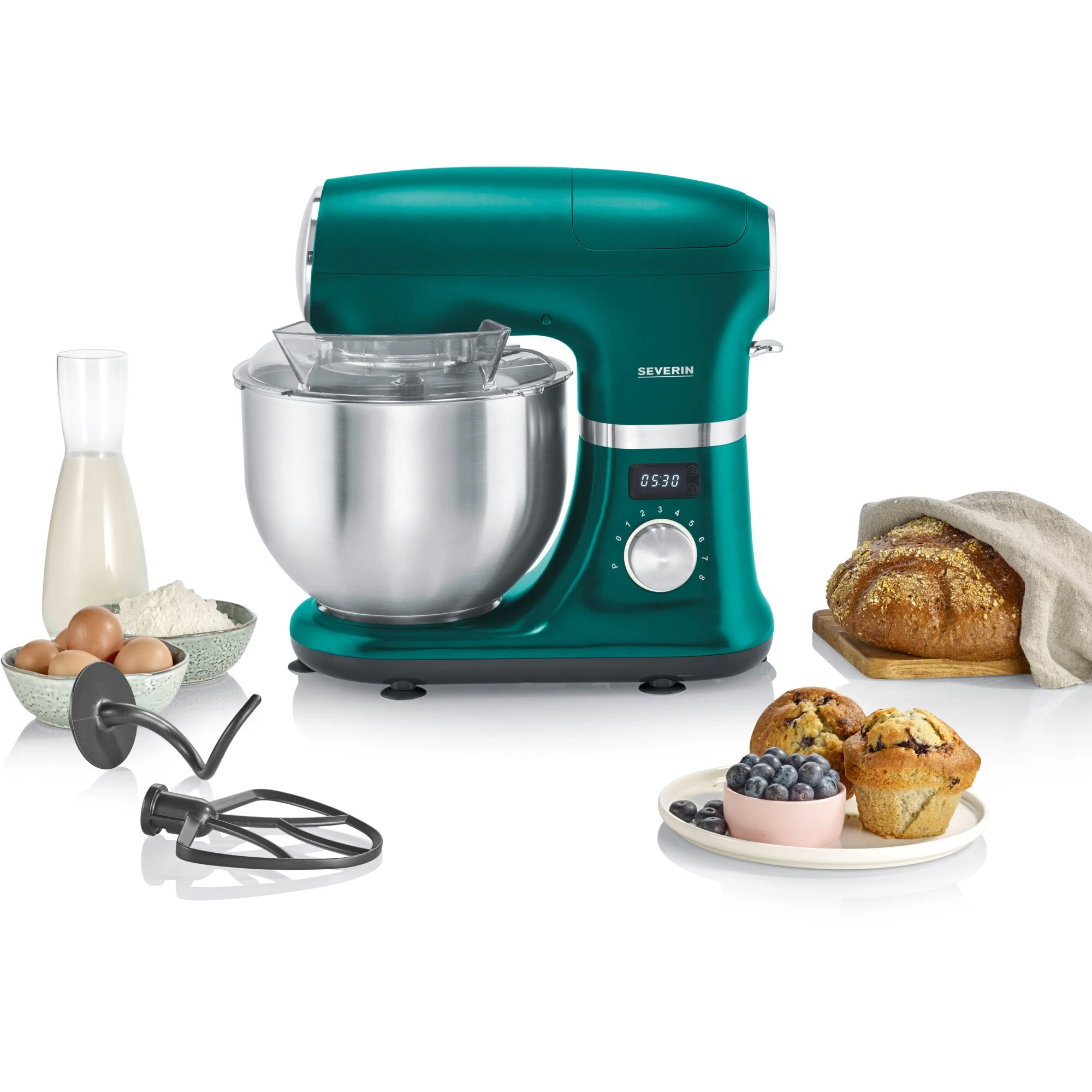Mit der hochwertigen Küchenmaschine lassen sich Traumgerichte kreieren und ohne anstrengendes Kneten. Die Küchenmaschine von SEVERIN ist mit dem Knethaken, Flachrührer und Schneebesen vielseitig einsetzbar. Durch zwei Display-Modi wird man bei der Zubereitungsdauer unterstützt oder der Prozess automatisch gestoppt. Der zusätzliche Spritzschutz mit Einfüllschütte ermöglicht ein sauberes Arbeiten und erleichtert die Zugabe von Zutaten. Das robuste und hochwertige Design aus Aluminium-Druckguss sorgt für einen sicheren Stand auch bei schweren Massen. Spülmaschinenfeste Teile erleichtern die Reinigung.