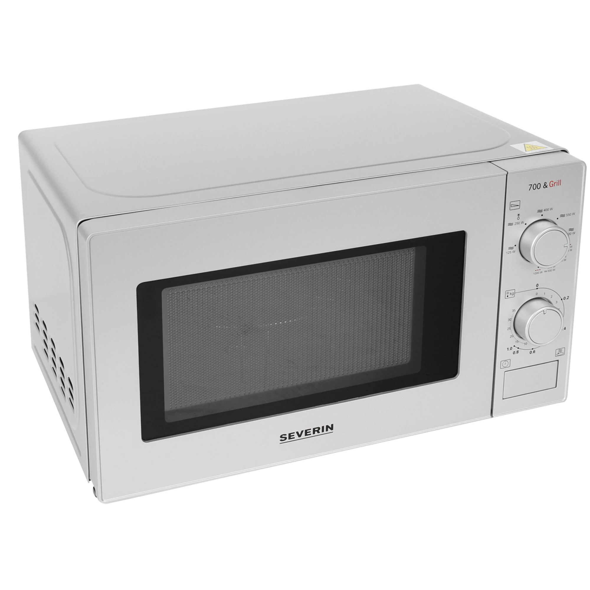Die Mikrowelle Severin MW 7900 mit Grillfunktion eignet sich optimal für die kleine Küche. Mit 8 Litern Nutzinhalt im Garraum und 700 Watt Leistung als Mikrowelle sowie einer Grillfunktion mit 1000 Watt lässt sich jedes Gargut zubereiten und aufwärmen. Neun verschiedene Leistungsstufen inkl. Grillstufe lassen sich einfach über die Drehknebel mit Chrom-Elementen einstellen und durch das getönte Sichtfenster in der Tür bleibt das Gargut bei der MW 7900 immer im Blick. Mikrowelle und Grill sind getrennt oder kombiniert schaltbar.