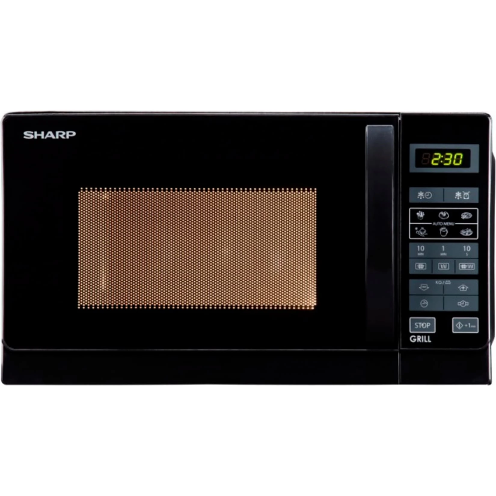 Das Sharp Grill-Mikrowellengerät (2-in-1) R-642BKW mit elektronischer Bedienung, LED-Anzeige und 20 Liter Garraum eignet sich besonders gut zum schnellen Garen von Speisen, die knusprig gebräunt oder überbacken werden sollen. 11 Leistungsstufen lassen sich bequem über Bedientasten einstellen. Zusätzlich erleichtern die acht voreingestellten Gar- und Auftau-Automatikprogramme die Zubereitung.