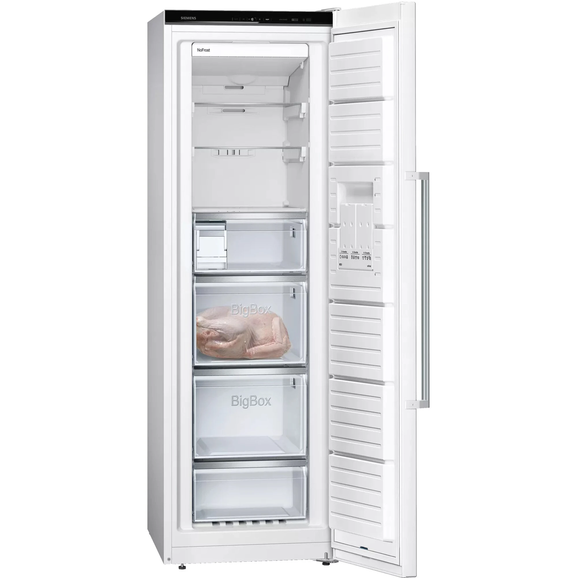 Der Gefrierschrank Siemens GS36NAWEP bietet einen Gesamtnutzinhalt von 242 Litern und jede Menge Komfort. Neben einer frei zugänglichen easyAccess Zone ist er mit vier transparenten Gefrierschubladen, davon zwei bigBoxen zum Stapeln von Einfrierbehältern oder für großes Gefriergut, ausgestattet, die dank varioZone einfach herausnehmbar sind und sich flexibel auf die persönlichen Platzansprüche einstellen lassen. Mit der noFrost-Technologie wird mühsames Abtauen überflüssig und das MultiAirflow-System sorgt für optimale und gleichmäßige Kälteverteilung. freshSense ermöglicht eine konstante Temperatur durch intelligente Sensortechnik und die SuperGefrieren-Funktion mit Eingefrierautomatik schützt bereits Gefrorenes beim Einlegen frischer Lebensmittel vor dem Antauen. Für zusätzlichen Komfort sorgt der herausnehmbare Ice-Twister.