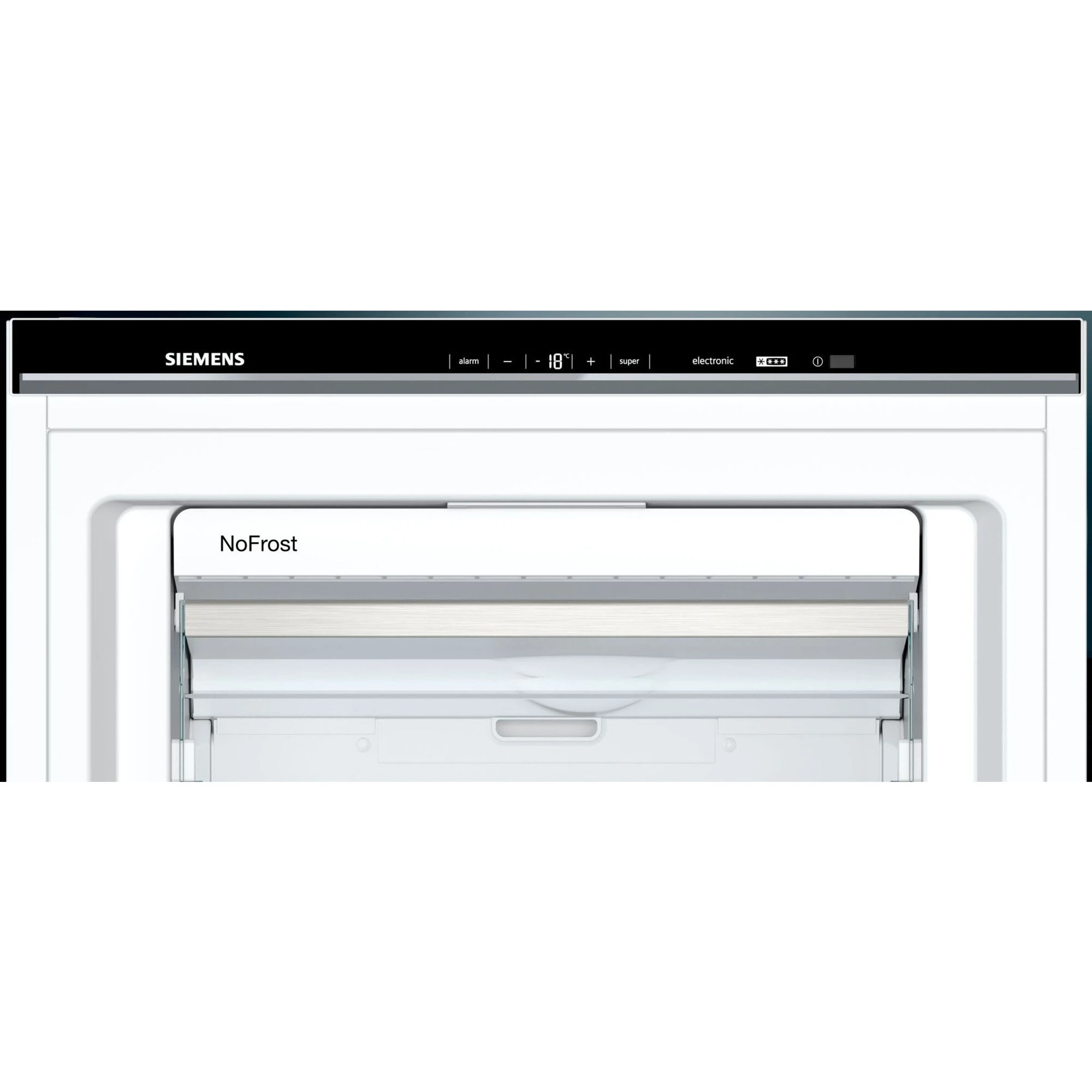 Der Gefrierschrank Siemens GS54NAWCV bietet einen Gesamtnutzinhalt von 328 Litern und jede Menge Komfort. Neben zwei Gefrierfächern mit transparenter Klappe ist er mit fünf transparenten Gefrierschubladen ausgestattet, davon eine bigBox zum Stapeln von Einfrierbehältern oder für großes Gefriergut. Dank varioZone lassen sich die Schubladen und die Glasablagen zwischen den Schubladen problemlos neu anordnen, um den Raum im Gefrierschrank flexibel zu gestalten. Mit der noFrost-Technologie wird mühsames Abtauen überflüssig und das MultiAirflow-System sorgt für optimale und gleichmäßige Kälteverteilung. Die Temperaturregelung des GS54NAWCV erfolgt elektronisch und ist digital ablesbar; die SuperGefrieren-Funktion mit Eingefrierautomatik schützt bereits Gefrorenes beim Einlagern frischer Lebensmittel vor dem Antauen. freshSense ermöglicht eine konstante Temperatur durch intelligente Sensortechnik und das multiAlarm-System mit Memory-Funktion benachrichtigt optisch und akustisch, sobald die Temperatur steigt. Mit einem Stromverbrauch von 170 kWh im Jahr ist der GS54NAWCV in die Energieeffizienzklasse C eingestuft.