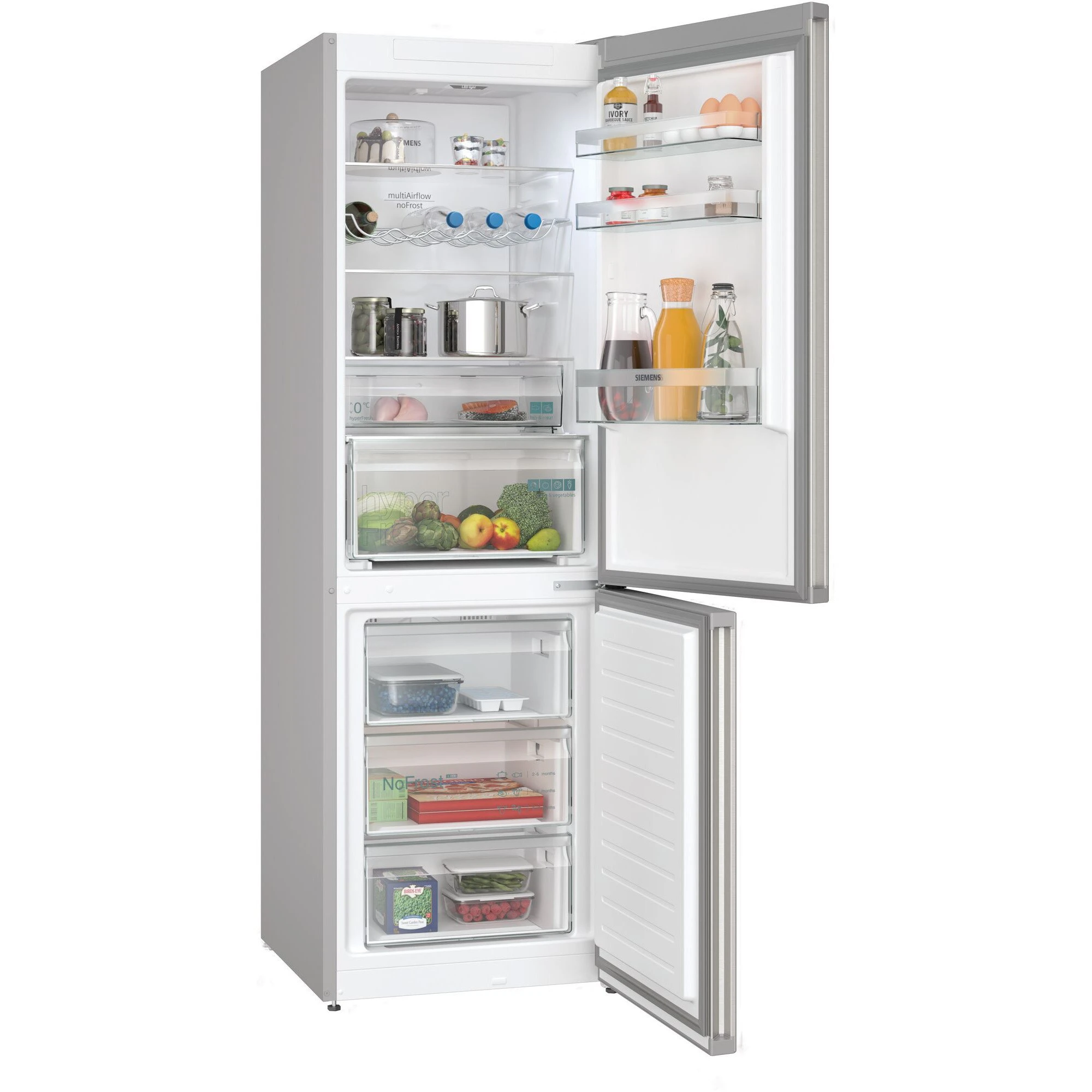 Die Kühl-/Gefrierkombination Siemens KG36NXIDF ist mit einem Gesamtnutzinhalt von 321 Litern ideal für den mittelgroßen Haushalt geeignet und bietet viel Komfort. Im 218 Liter umfassende Kühlbereich haben frische Lebensmittel auf vier Abstellflächen aus Sicherheitsglas, davon zwei höhenverstellbar, in einer hyperFresh Box für Obst und Gemüse und einer hyperFresh 0°C Box für Fisch und Fleisch sowie in drei Türfächern jede Menge Platz. Die superKühlen-Funktion kühlt neu eingelegte Lebensmittel schneller ab und bietet so Schutz für bereits eingelagerte Speisen. Der Gefrierbereich umfasst 103 Liter und ist mit drei transparenten Gefriergutschubladen ausgestattet. Dank der noFrost-Technologie gegen Eisbildung muss der Gefrierraum nie wieder mühsam abgetaut werden. Die Temperaturregelung der KG36NXIDF erfolgt elektronisch getrennt für jede Temperaturzone mittels und ist über LED ablesbar. Mit einem Stromverbrauch von 199 kWh im Jahr ist die KG36NXIDF in die Energieeffizienzklasse D eingestuft.