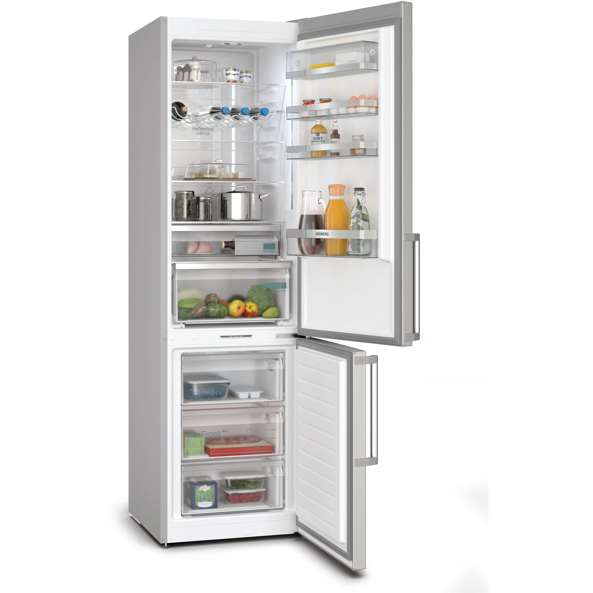 Die Kühl-/Gefrierkombination Siemens KG39NAICT ist mit einem Gesamtnutzinhalt von 363 Litern ideal für den großen Haushalt geeignet und bietet viel Komfort. Im 260 Liter umfassenden Kühlbereich haben frische Lebensmittel auf fünf Abstellflächen aus Sicherheitsglas, davon drei höhenverstell- und vier ausziehbar, in einer hyperFresh Box mit Feuchteregelung für Obst und Gemüse und einer hyperFresh 0°C Box sowie in vier Türfächern jede Menge Platz. Die superKühlen-Funktion kühlt neu eingelegte Lebensmittel schneller und bietet so Schutz für bereits eingelagerte Speisen. Der Gefrierbereich umfasst 103 Liter und ist mit drei transparenten Gefriergutschubladen ausgestattet. Dank der noFrost-Technologie gegen Eisbildung muss der Gefrierraum nie wieder mühsam abgetaut werden. Die Temperaturregelung der KG39NAICT erfolgt elektronisch getrennt für jede Temperaturzone mittels und ist über LED ablesbar. Mit einem Stromverbrauch von 162 kWh im Jahr ist die KG39NAICT in die Energieeffizienzklasse C eingestuft.