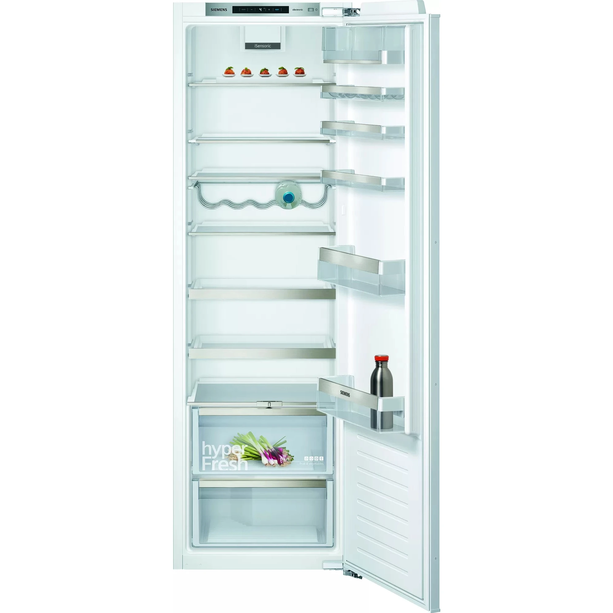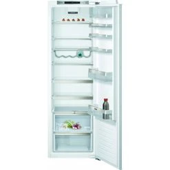 Der vollintegrierbare Kühlschrank Siemens KI81RADE0 stellt einen Gesamtnutzinhalt von 319 Litern zur übersichtlichen Lagerung frischer Lebensmittel zur Verfügung. Er ist mit sieben Abstellflächen aus Sicherheitsglas, davon drei höhenverstellbar und eine ausziehbar, sowie sechs Türfächern, davon ein Butter-/Käsefach, ausgestattet. Zwei hyperFresh plus Boxen halten Obst und Gemüse bis zu zweimal länger frisch und knackig. Die intelligente Sensortechnik FreshSense sorgt im gesamten Kühlraum für eine konstante Temperatur und dank der softClosing-Tür ist der KI81RADE0 stets ordnungsgemäß und vollständig geschlossen. Mit der SuperKühlen-Funktion wird die Temperatur für eine eingestellte Zeit gesenkt, sodass beim Einlagern wärmerer Lebensmittel ein unerwünschter Temperaturanstieg bereits gekühlter Speisen verhindert wird.