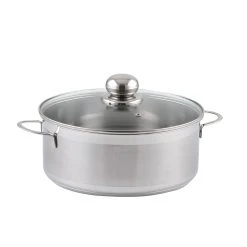 Der Bratentopf City von SSW hat einen extra starken Thermo-Sandwichboden. Der flache Bratentopf eignet sich besonders gut zum Anbraten und Schmoren. Die Edelstahlgriffe liegen sehr gut in der Hand und sind somit kinderleicht zu bedienen.