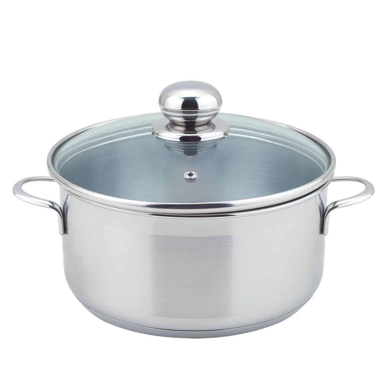 Der Fleischtopf City von SSW hat einen extra starken Thermo-Sandwichboden. Der flache Bratentopf eignet sich besonders gut zum Anbraten und Schmoren. Die Edelstahlgriffe liegen sehr gut in der Hand. Der Glasdeckel mit Chromrand, Edelstahlknopf und Dampfloch ist perfekt zum Sichtkochen.