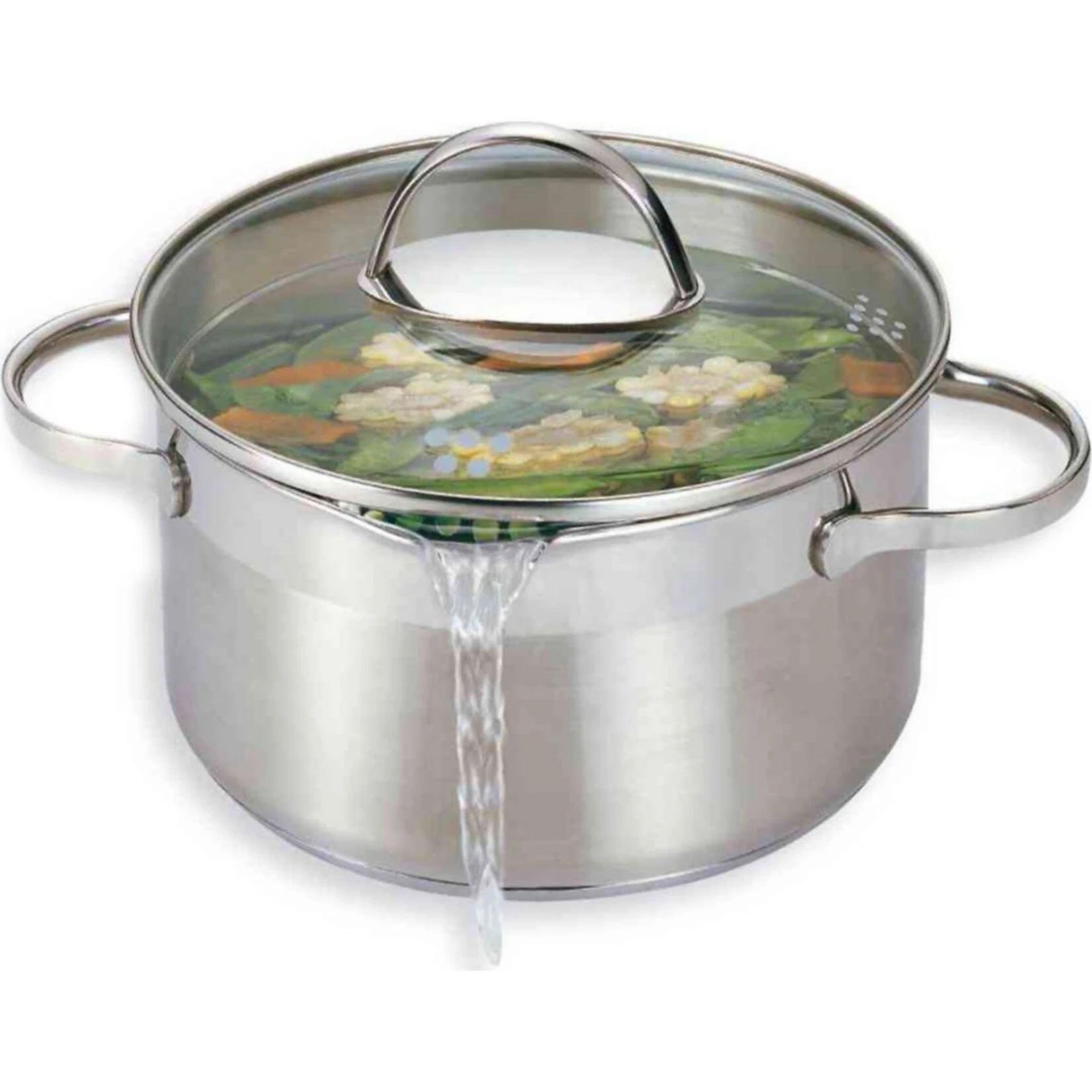 Der Kochtopf Comfort von SSW erleichtern mit seinen zwei Ausgüssen in dem Deckel, das Abschütten des heißen Wassers. Durch den extra starken Thermo-Sandwichboden, ist die schnelle Aufnahme und Speicherung von Wärme gegeben. Das Highlight an diesem Topf sind die ergonomisch, geformten Edelstahlgriffe die perfekt in der Hand liegen.